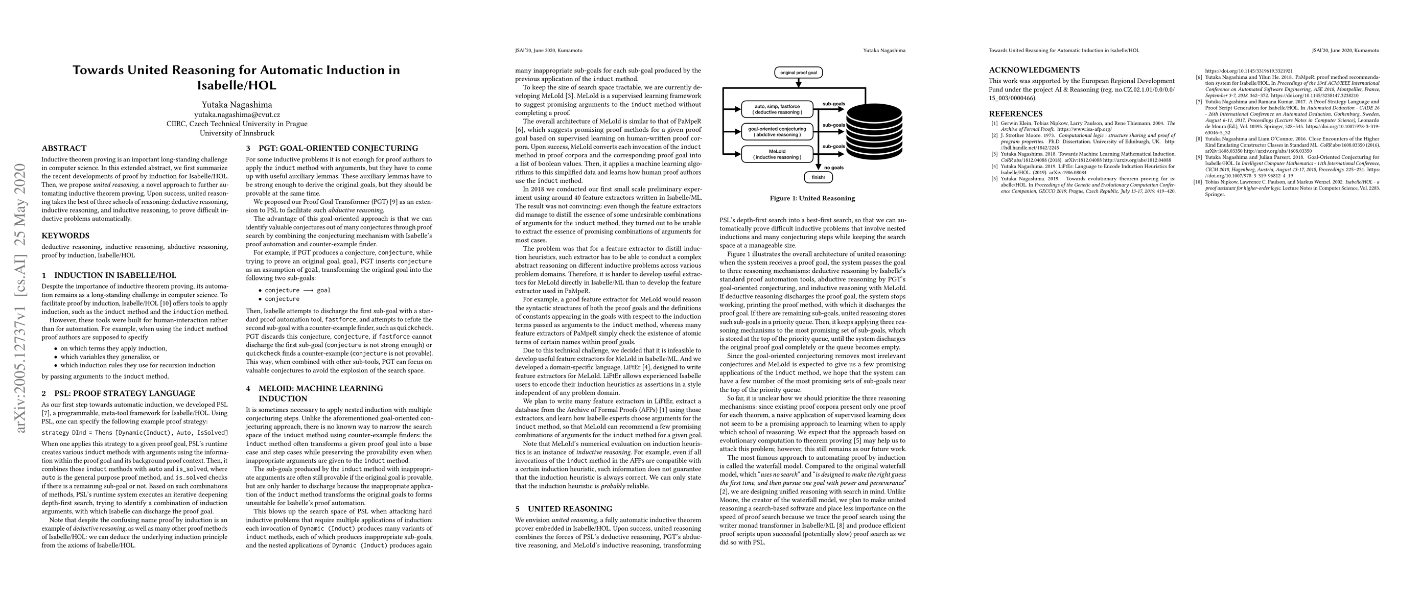 Inductive theorem proving is an important long-standing challenge in computer science. In this extended abstract, we first summarize the recent developments of proof by induction for Isabelle/HOL. Then, we propose united reasoning, a novel approach to further automating inductive theorem proving. Upon success, united reasoning takes the best of three schools of reasoning: deductive reasoning, inductive reasoning, and inductive reasoning, to prove difficult inductive problems automatically.