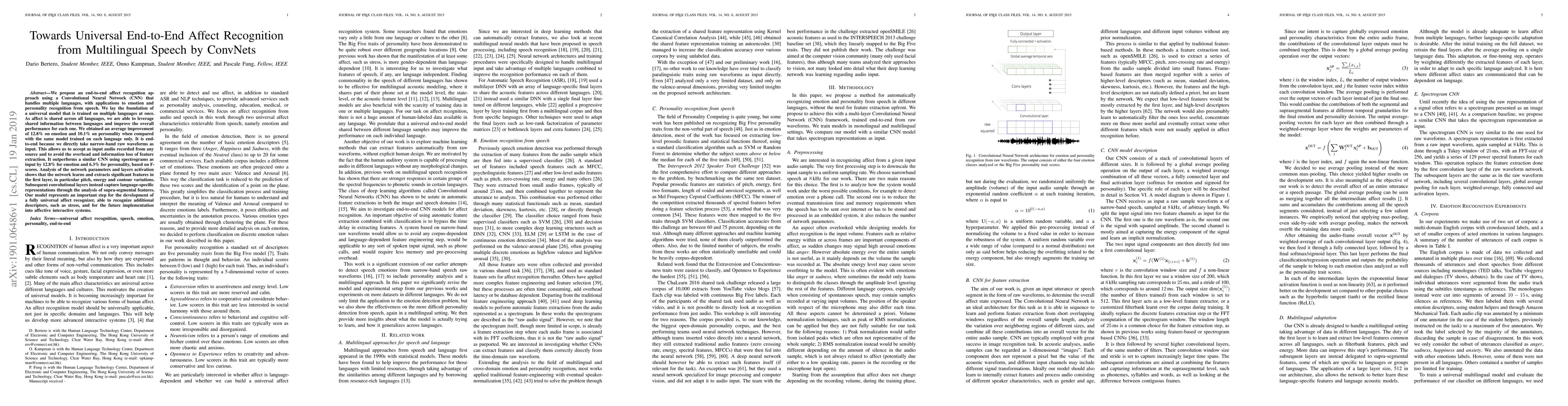 The paper proposes an end-to-end affect recognition approach using Convolutional Neural Networks (CNNs) for multilingual speech, trained on multiple languages simultaneously to leverage shared emotional information.