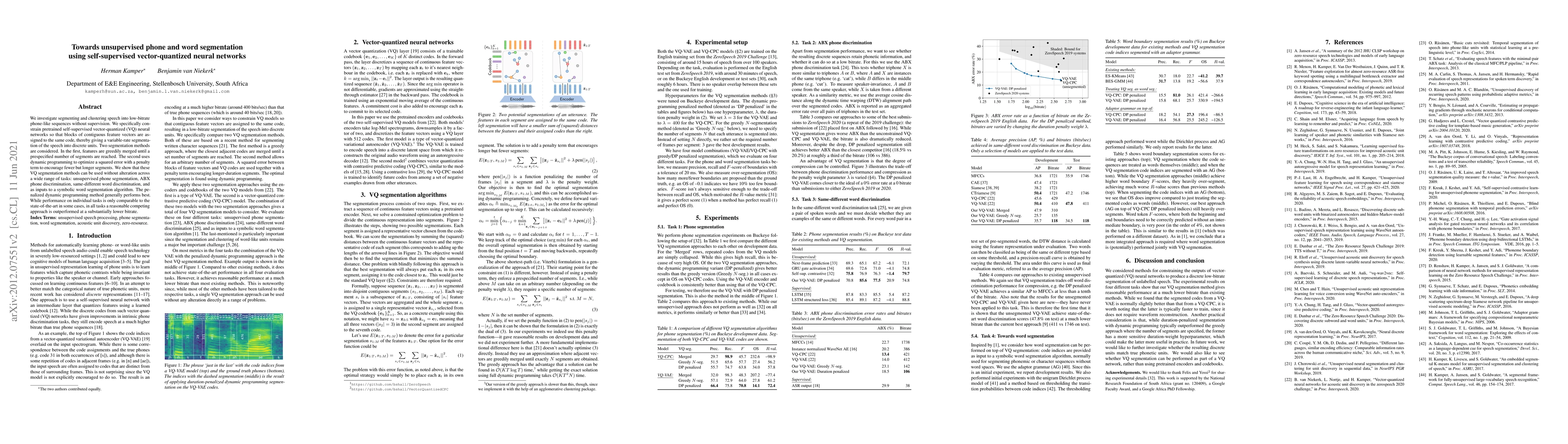This paper explores unsupervised phone and word segmentation using self-supervised vector-quantized neural networks, employing two segmentation methods: greedy merging and penalized dynamic programming. The penalized dynamic programming method generally outperforms the others, achieving competitive performance at lower bitrates across various tasks.