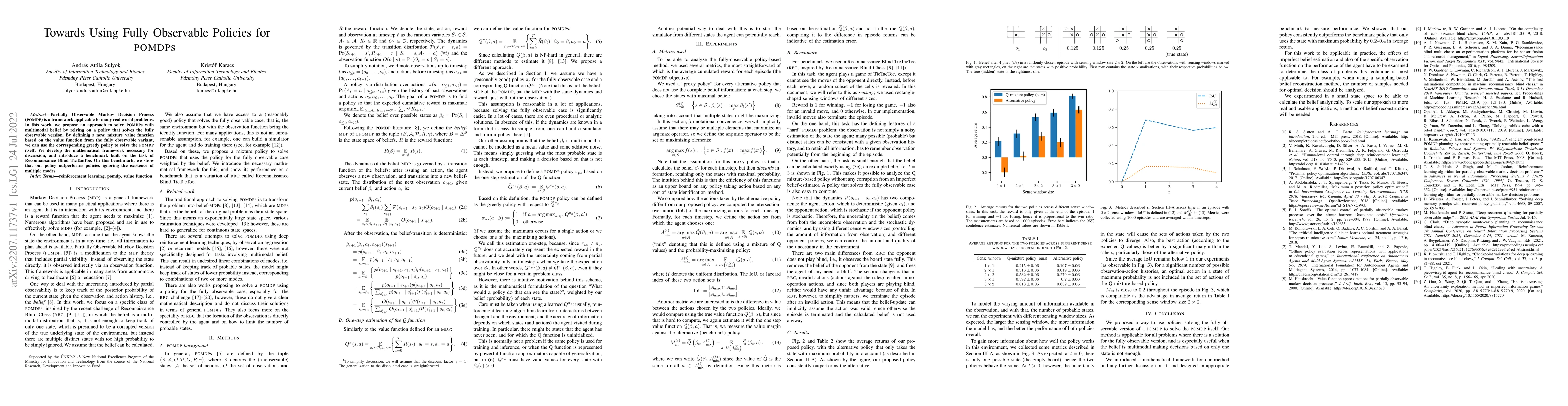 This paper proposes a method to solve POMDPs with multimodal beliefs by leveraging fully observable policies. It introduces a mixture value function and demonstrates superior performance on a Reconnaissance Blind TicTacToe benchmark compared to policies that do not consider multiple modes.