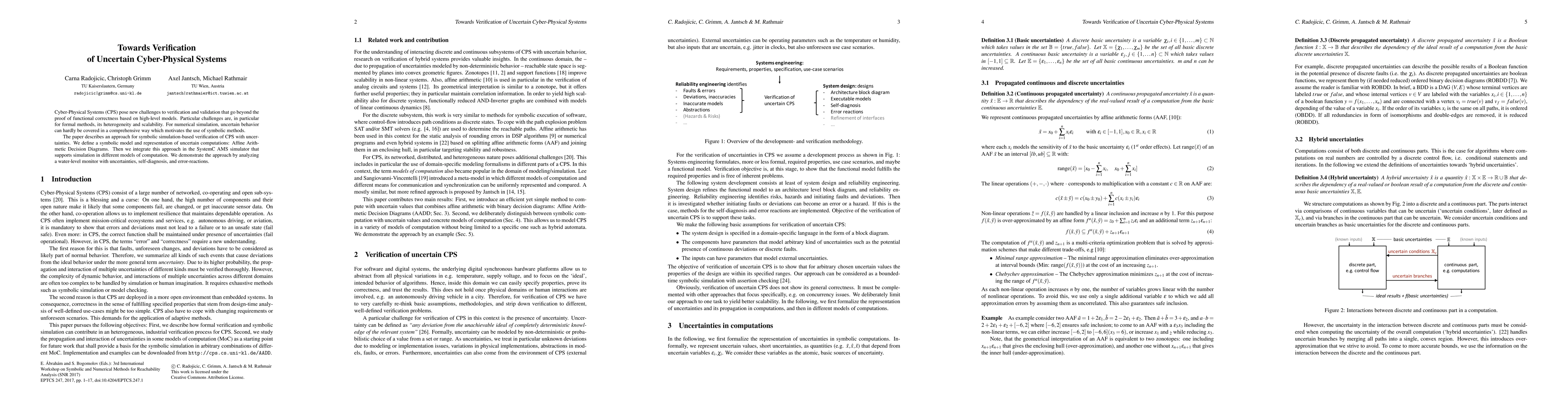 Cyber-Physical Systems (CPS) pose new challenges to verification and validation that go beyond the proof of functional correctness based on high-level models. Particular challenges are, in particular for formal methods, its heterogeneity and scalability. For numerical simulation, uncertain behavior can hardly be covered in a comprehensive way which motivates the use of symbolic methods. The paper describes an approach for symbolic simulation-based verification of CPS with uncertainties. We define a symbolic model and representation of uncertain computations: Affine Arithmetic Decision Diagrams. Then we integrate this approach in the SystemC AMS simulator that supports simulation in different models of computation. We demonstrate the approach by analyzing a water-level monitor with uncertainties, self-diagnosis, and error-reactions.