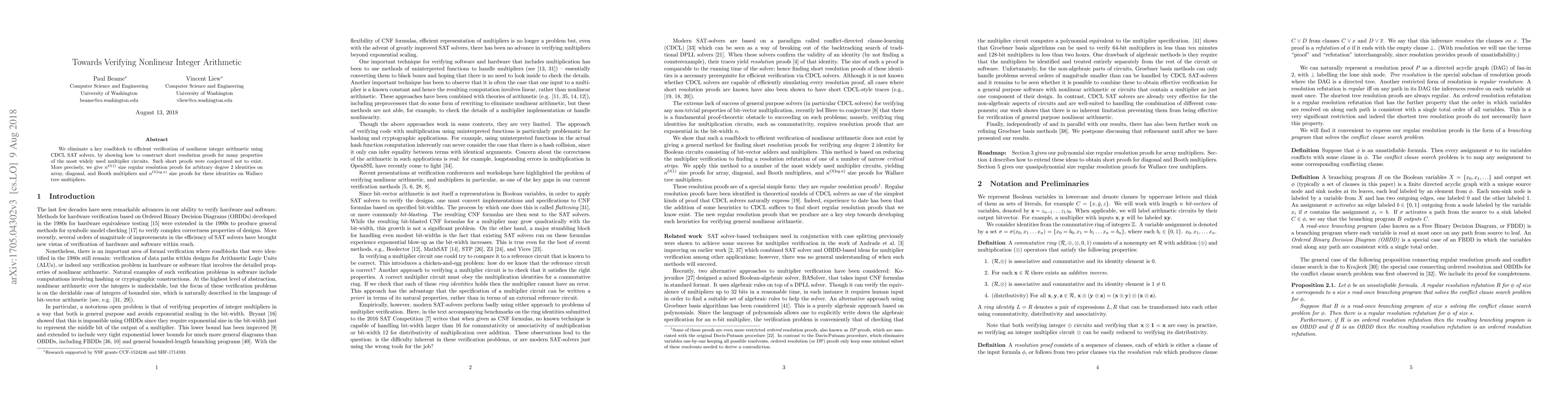 We eliminate a key roadblock to efficient verification of nonlinear integer arithmetic using CDCL SAT solvers, by showing how to construct short resolution proofs for many properties of the most widely used multiplier circuits. Such short proofs were conjectured not to exist. More precisely, we give n^{O(1)} size regular resolution proofs for arbitrary degree 2 identities on array, diagonal, and Booth multipliers and quasipolynomial- n^{O(\log n)} size proofs for these identities on Wallace tree multipliers.