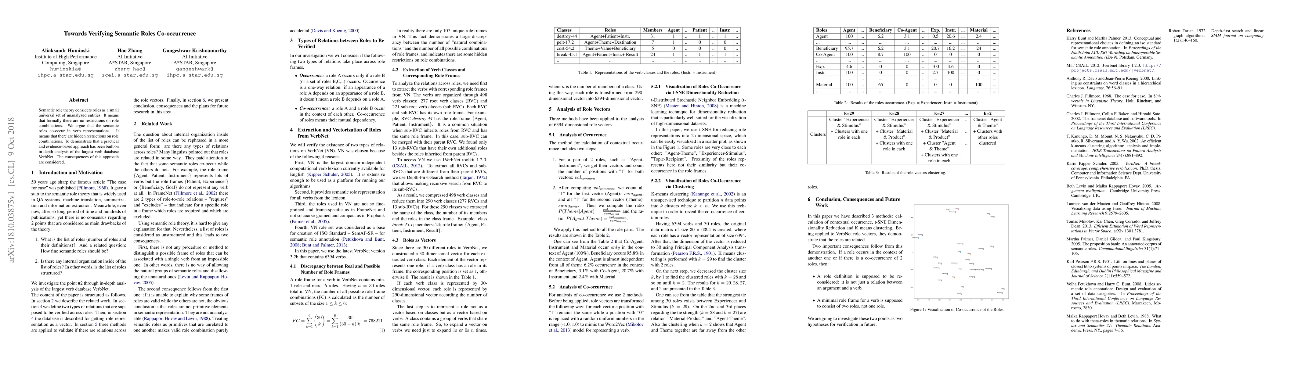 Semantic role theory considers roles as a small universal set of unanalyzed entities. It means that formally there are no restrictions on role combinations. We argue that the semantic roles co-occur in verb representations. It means that there are hidden restrictions on role combinations. To demonstrate that a practical and evidence-based approach has been built on in-depth analysis of the largest verb database VerbNet. The consequences of this approach are considered.