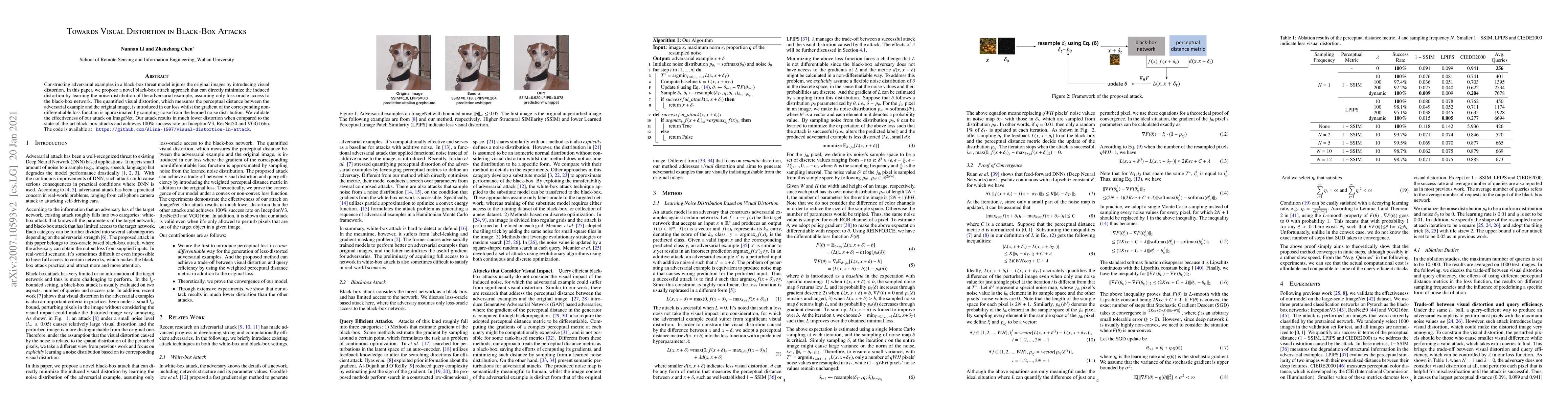 A new black-box attack approach minimizes visual distortion in adversarial examples by learning the noise distribution of attacks. It achieves 100% success rate on certain models with lower distortion than state-of-the-art methods.