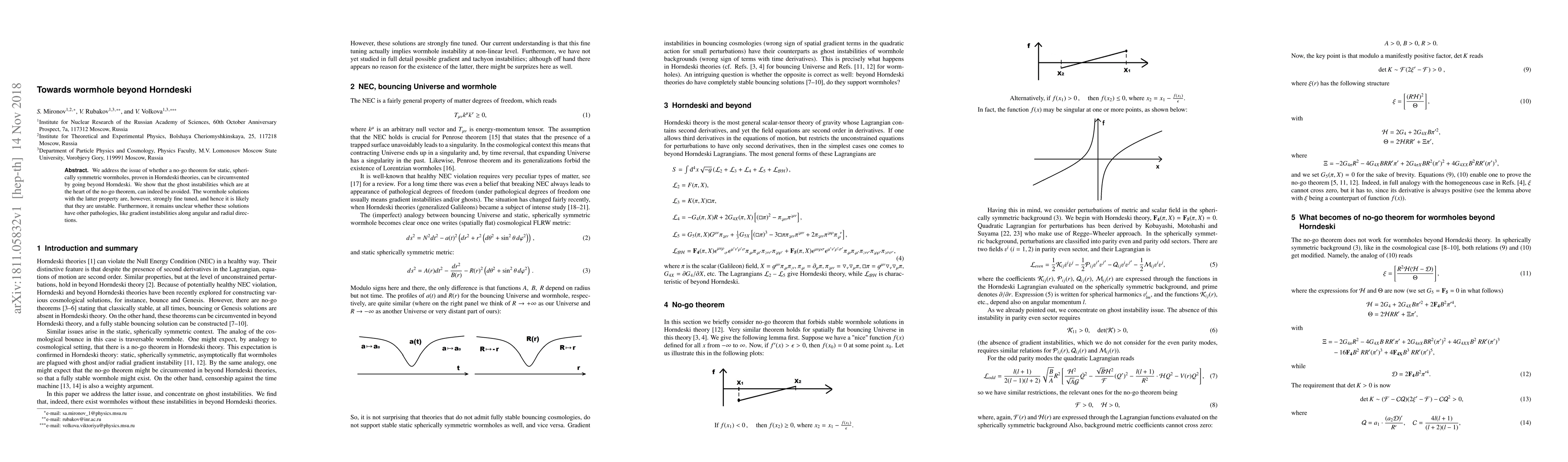 Researchers found that certain wormhole solutions beyond Horndeski theories can avoid ghost instabilities, but these solutions are likely unstable and may have other pathologies.