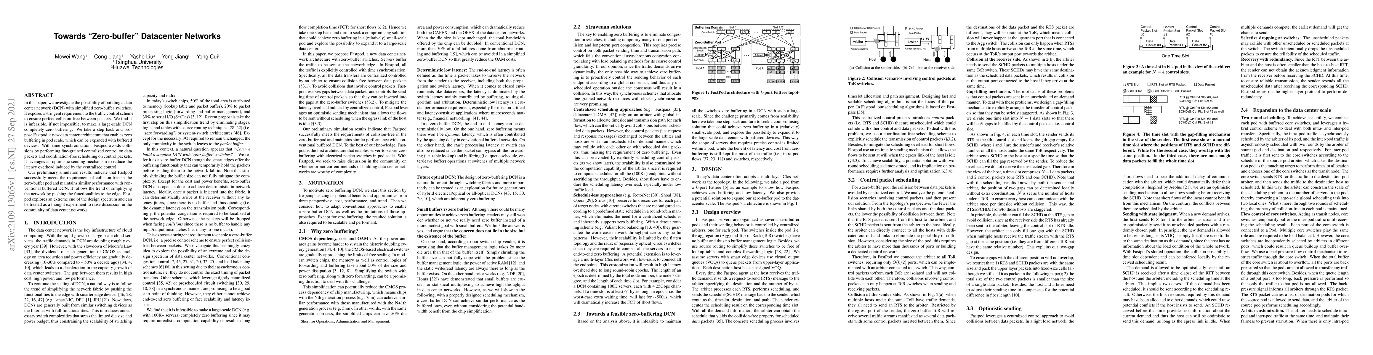 Researchers propose Fastpod, a data center architecture that enables zero-buffering without collisions, leveraging centralized control and optimistic sending mechanisms. Their findings indicate Fastpod meets performance requirements similar to conventional buffered DCNs.