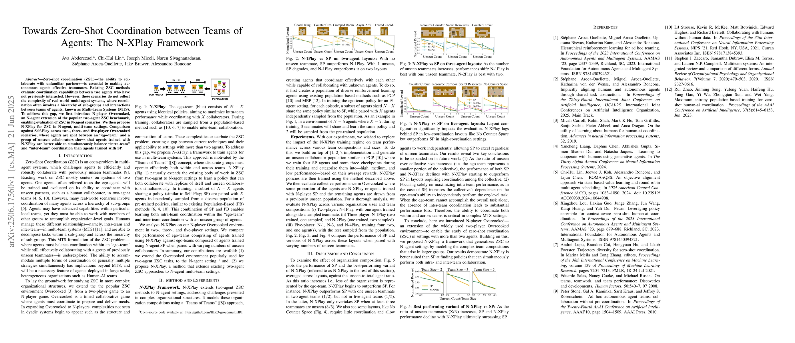 Zero-shot coordination (ZSC) -- the ability to collaborate with unfamiliar partners -- is essential to making autonomous agents effective teammates. Existing ZSC methods evaluate coordination capabilities between two agents who have not previously interacted. However, these scenarios do not reflect the complexity of real-world multi-agent systems, where coordination often involves a hierarchy of sub-groups and interactions between teams of agents, known as Multi-Team Systems (MTS). To address this gap, we first introduce N-player Overcooked, an N-agent extension of the popular two-agent ZSC benchmark, enabling evaluation of ZSC in N-agent scenarios. We then propose N-XPlay for ZSC in N-agent, multi-team settings. Comparison against Self-Play across two-, three- and five-player Overcooked scenarios, where agents are split between an ``ego-team'' and a group of unseen collaborators shows that agents trained with N-XPlay are better able to simultaneously balance ``intra-team'' and ``inter-team'' coordination than agents trained with SP.