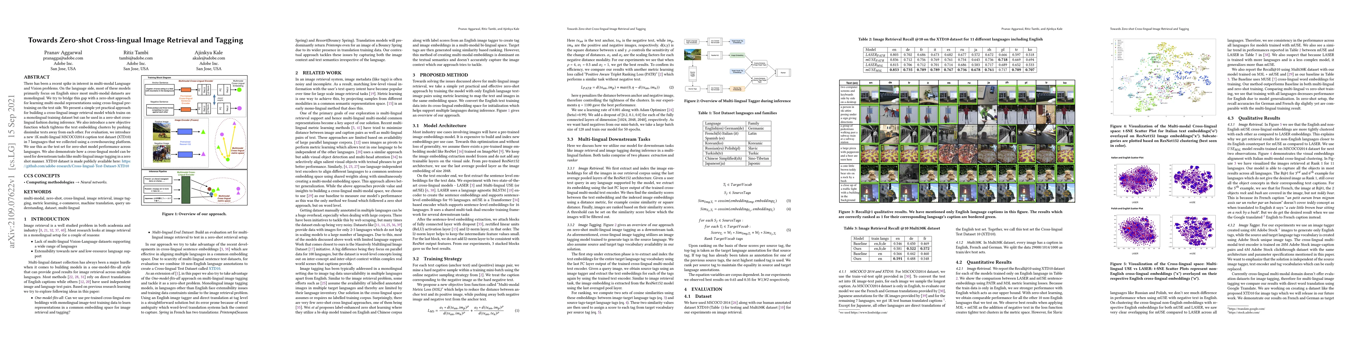 This paper proposes a zero-shot cross-lingual image retrieval and tagging model using multi-modal representations learned through cross-lingual pre-training on text. It introduces a new 1K multi-lingual MSCOCO2014 caption test dataset (XTD10) for evaluating zero-shot performance across languages.
