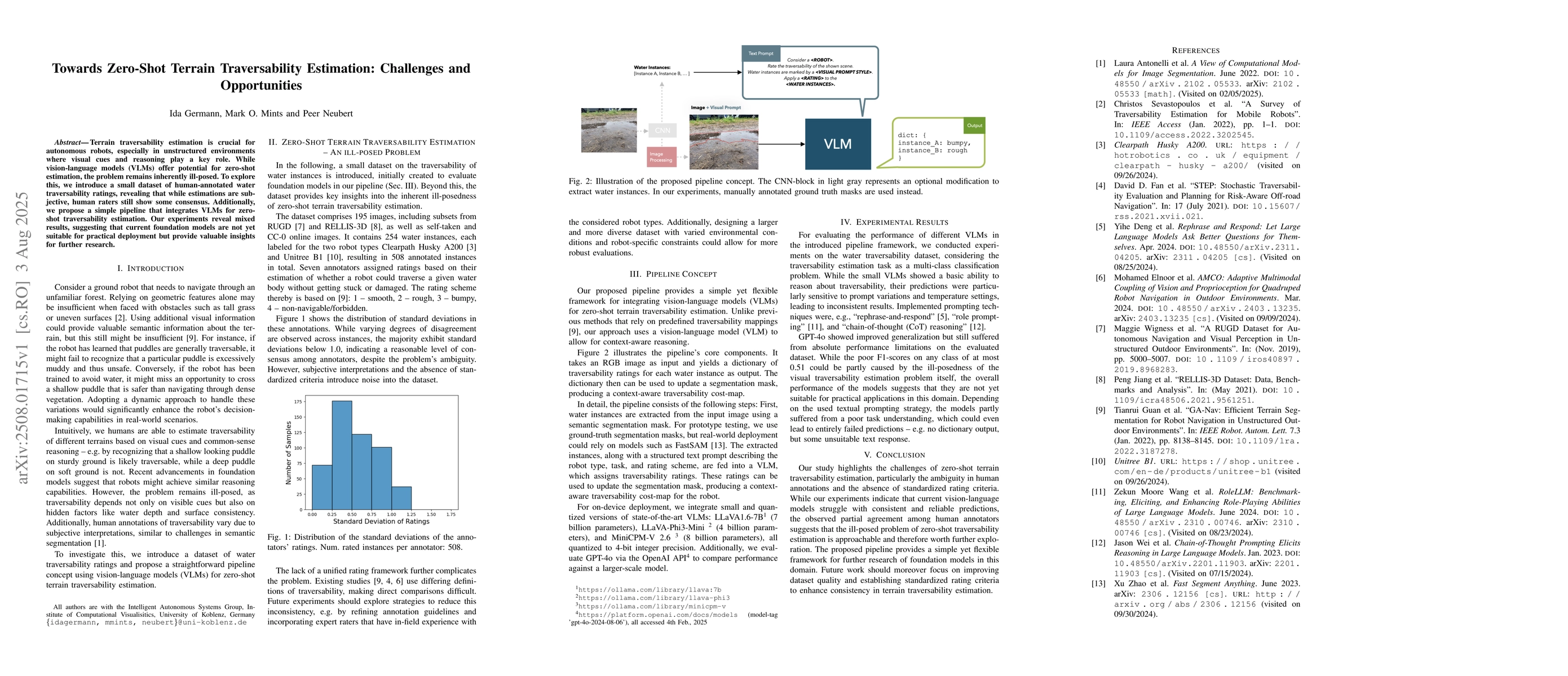 Terrain traversability estimation is crucial for autonomous robots, especially in unstructured environments where visual cues and reasoning play a key role. While vision-language models (VLMs) offer potential for zero-shot estimation, the problem remains inherently ill-posed. To explore this, we introduce a small dataset of human-annotated water traversability ratings, revealing that while estimations are subjective, human raters still show some consensus. Additionally, we propose a simple pipeline that integrates VLMs for zero-shot traversability estimation. Our experiments reveal mixed results, suggesting that current foundation models are not yet suitable for practical deployment but provide valuable insights for further research.