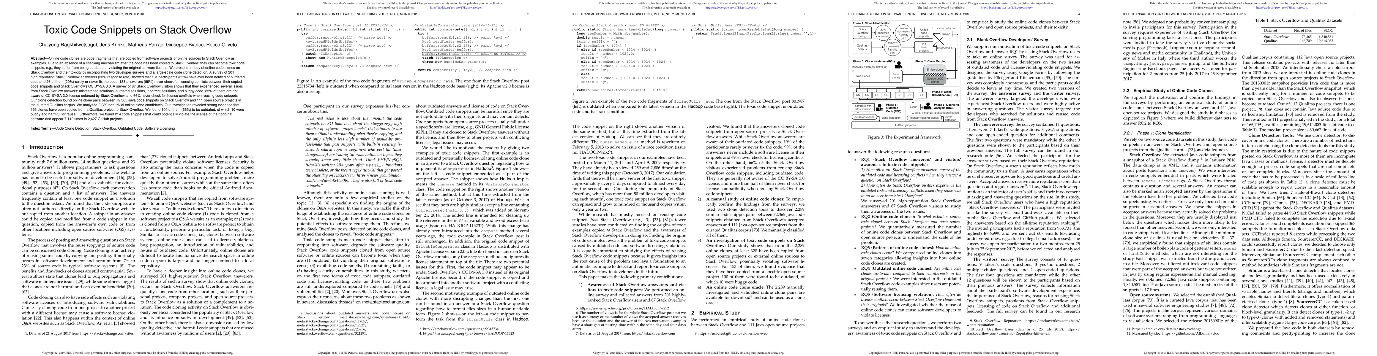 This study investigates the prevalence of toxic code snippets on Stack Overflow, identifying that many cloned code fragments are outdated or violate licensing agreements. Surveys of Stack Overflow contributors and visitors reveal widespread issues with outdated and unlicensed code, while code clone detection identified 153 clones from open-source projects that are outdated or potentially license-violating, posing risks to users.