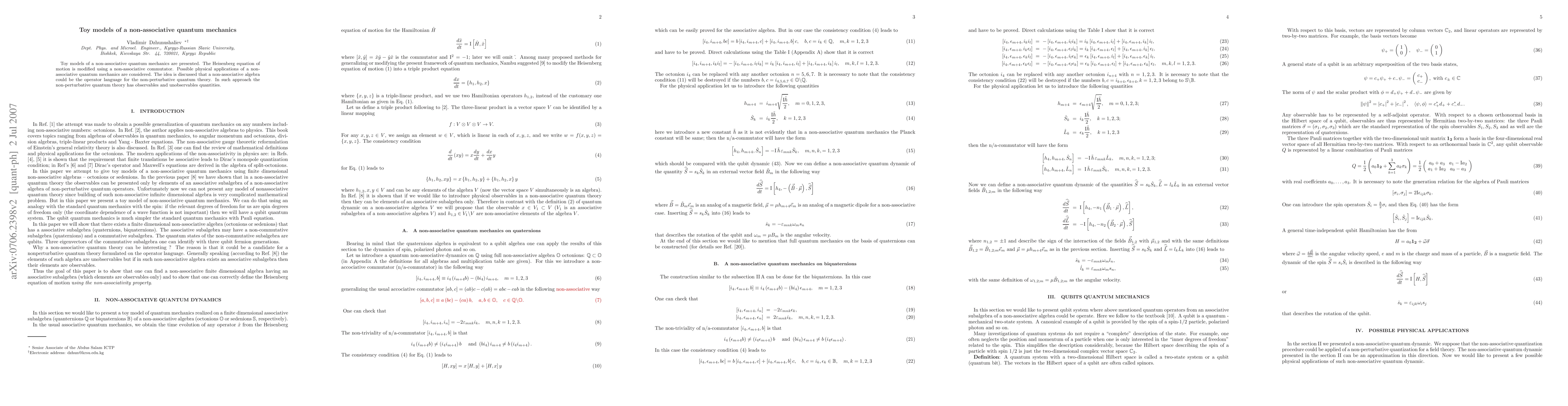 This paper introduces toy models for a non-associative quantum mechanics, modifying the Heisenberg equation with a non-associative commutator, and explores potential physical applications. It suggests that a non-associative algebra might serve as the operator language for a non-perturbative quantum theory, distinguishing between observables and unobservables.
