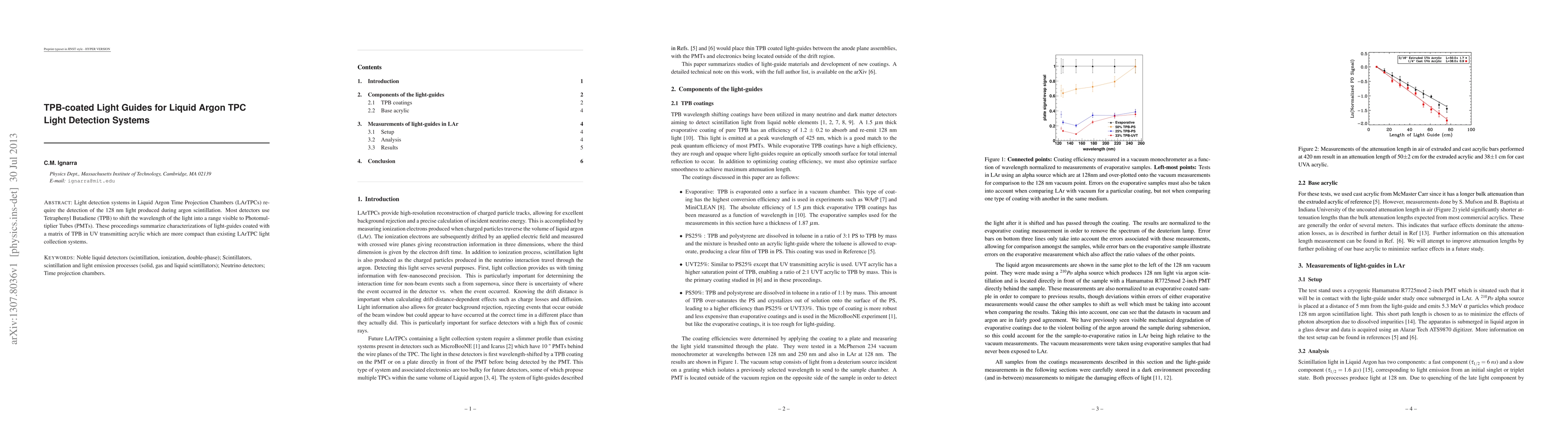 Light detection systems in Liquid Argon Time Projection Chambers (LArTPCs) require the detection of the 128 nm light produced during argon scintillation. Most detectors use Tetraphenyl Butadiene (TPB) to shift the wavelength of the light into a range visible to Photomultiplier Tubes (PMTs). These proceedings summarize characterizations of light-guides coated with a matrix of TPB in UV transmitting acrylic which are more compact than existing LArTPC light collection systems.