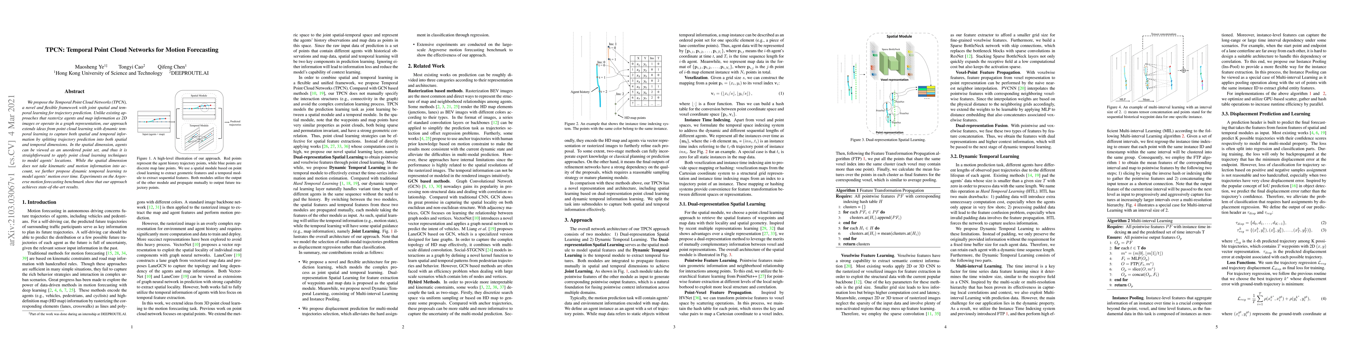The paper introduces Temporal Point Cloud Networks (TPCN), a framework for motion forecasting that leverages point cloud learning for spatial representation and dynamic temporal learning for motion modeling, achieving state-of-the-art results on the Argoverse benchmark. TPCN distinguishes itself by handling agents as unordered point sets and integrating temporal information to predict future trajectories.