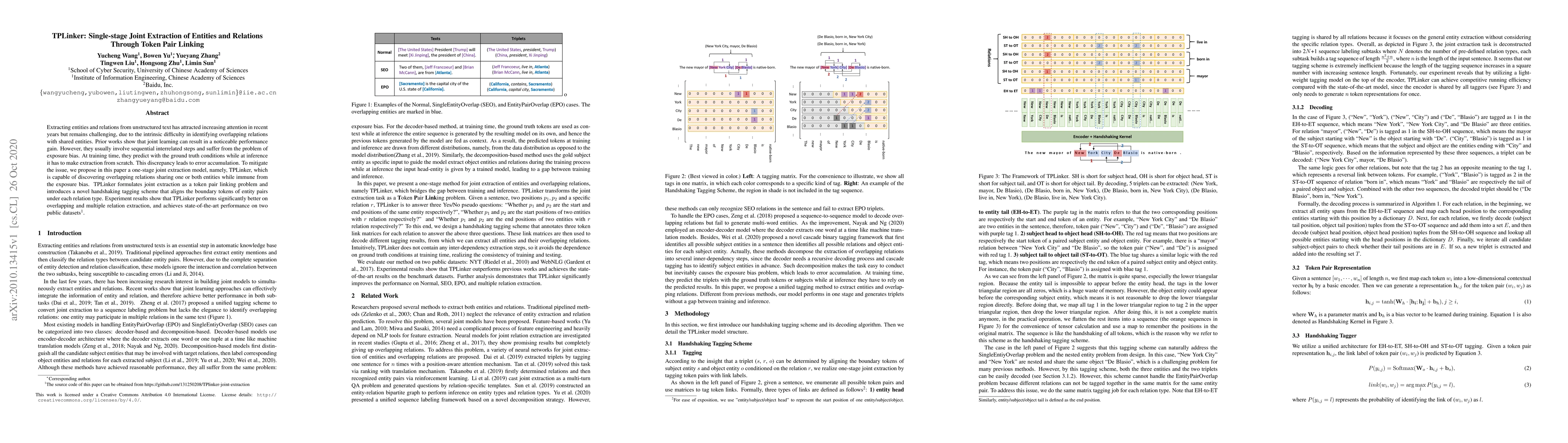 TPLinker proposes a single-stage joint extraction model for identifying entities and relations from unstructured text, addressing the challenge of overlapping relations. It outperforms previous methods by eliminating exposure bias and achieving state-of-the-art results on two public datasets.
