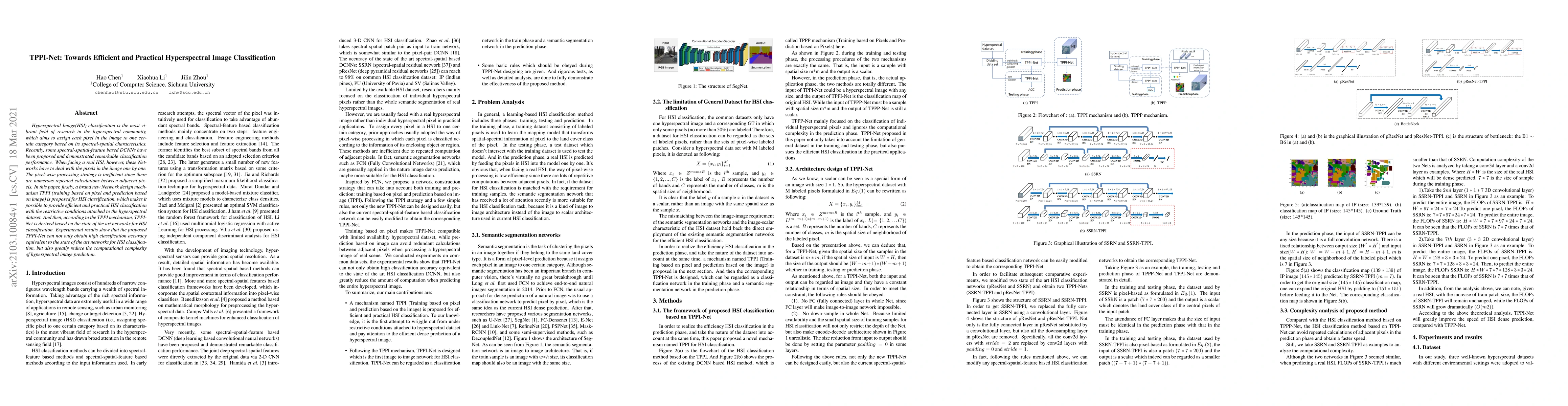 The paper proposes TPPI-Net, a novel network design mechanism for efficient hyperspectral image classification, which trains based on pixel information and predicts based on image context, significantly reducing computational complexity while maintaining high classification accuracy. Experimental results demonstrate TPPI-Net's effectiveness compared to state-of-the-art methods.