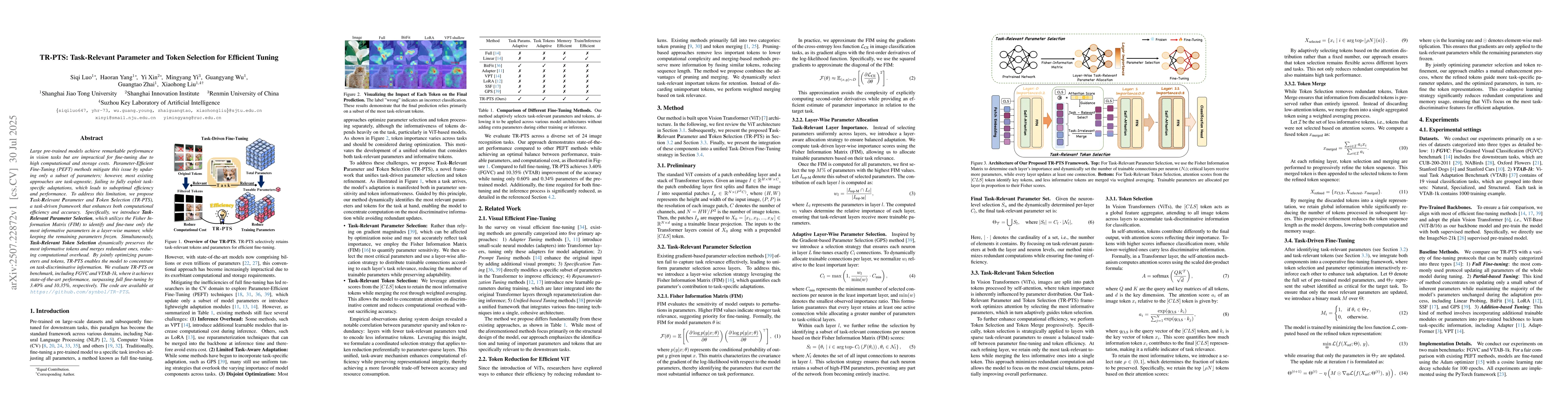 This research is significant as it addresses the high computational and storage costs of fine-tuning large pre-trained models, making it practical for real-world applications. The proposed TR-PTS framework enhances both computational efficiency and accuracy, which is crucial for deploying ViTs in resource-constrained environments.