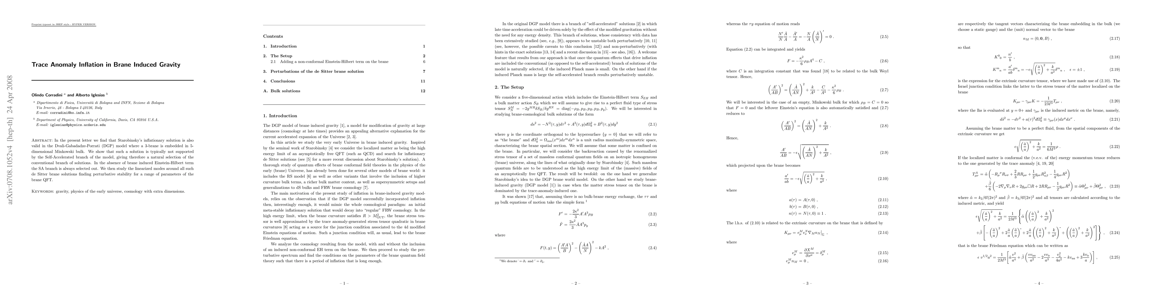 This paper demonstrates that Starobinsky's inflationary solution applies to the DGP model of brane-induced gravity, showing that the conventional branch of solutions is naturally selected over the self-accelerated branch. It also confirms the perturbative stability of de Sitter brane solutions within a range of parameters of the brane quantum field theory.