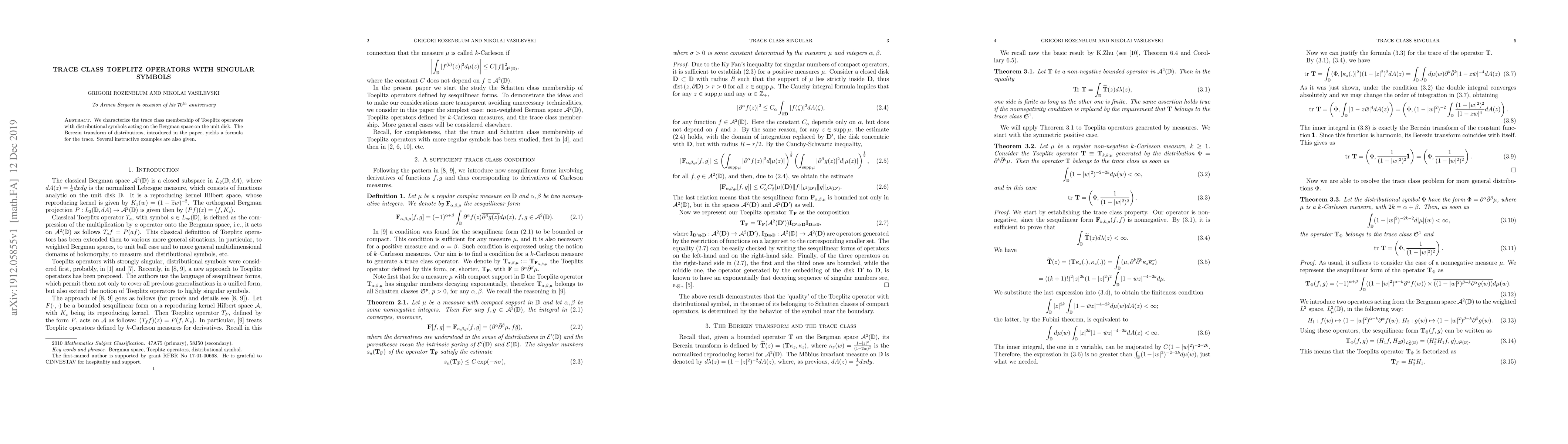 Researchers have developed a method to determine if Toeplitz operators with distributional symbols are trace class, which has implications for understanding the behavior of these operators in the Bergman space on the unit disk.