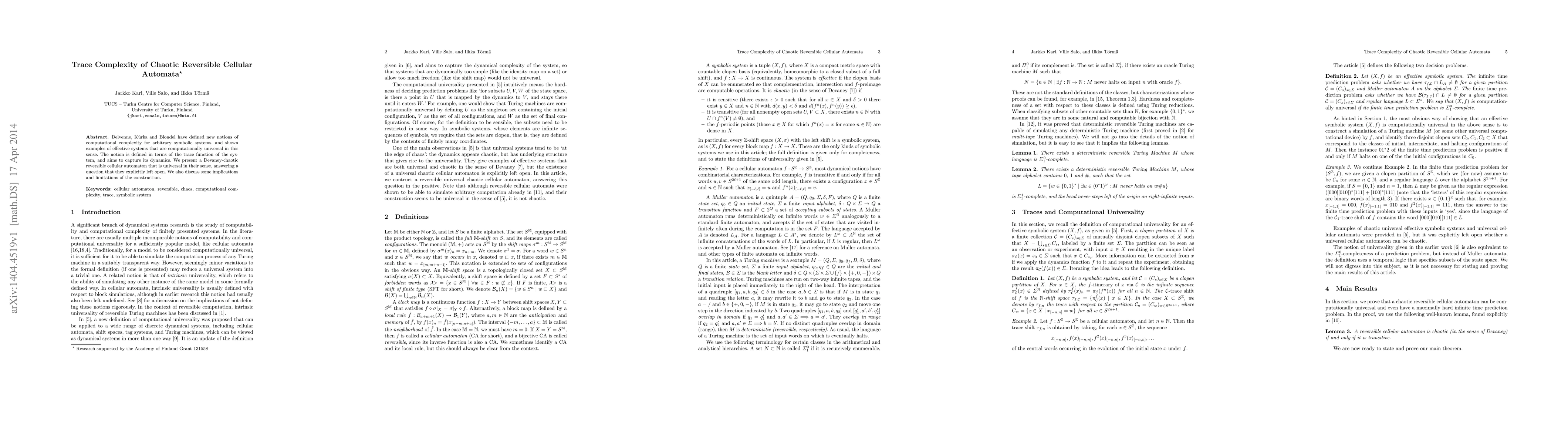 Delvenne, K\r{u}rka and Blondel have defined new notions of computational complexity for arbitrary symbolic systems, and shown examples of effective systems that are computationally universal in this sense. The notion is defined in terms of the trace function of the system, and aims to capture its dynamics. We present a Devaney-chaotic reversible cellular automaton that is universal in their sense, answering a question that they explicitly left open. We also discuss some implications and limitations of the construction.