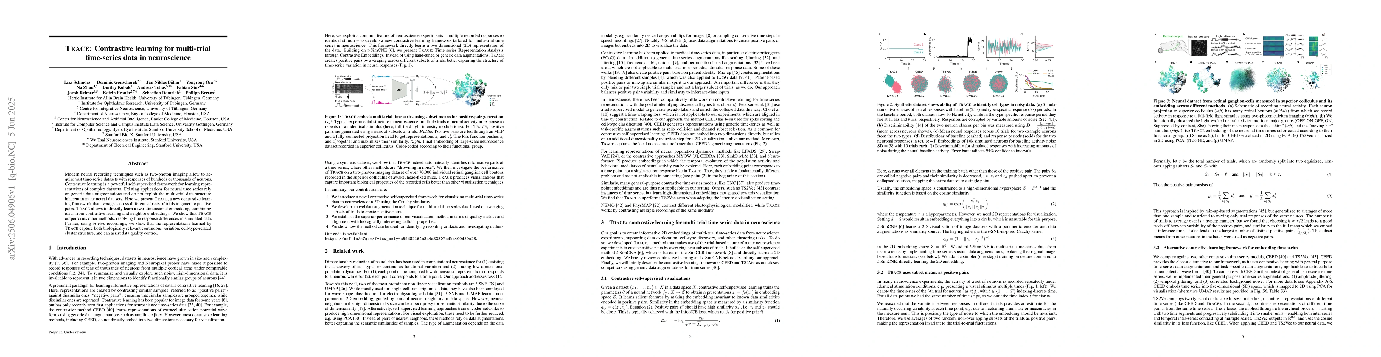 TRACE, a new contrastive learning framework, leverages multi-trial time-series data to learn biologically relevant representations in neuroscience, outperforming other methods in simulations and real-world in vivo recordings.