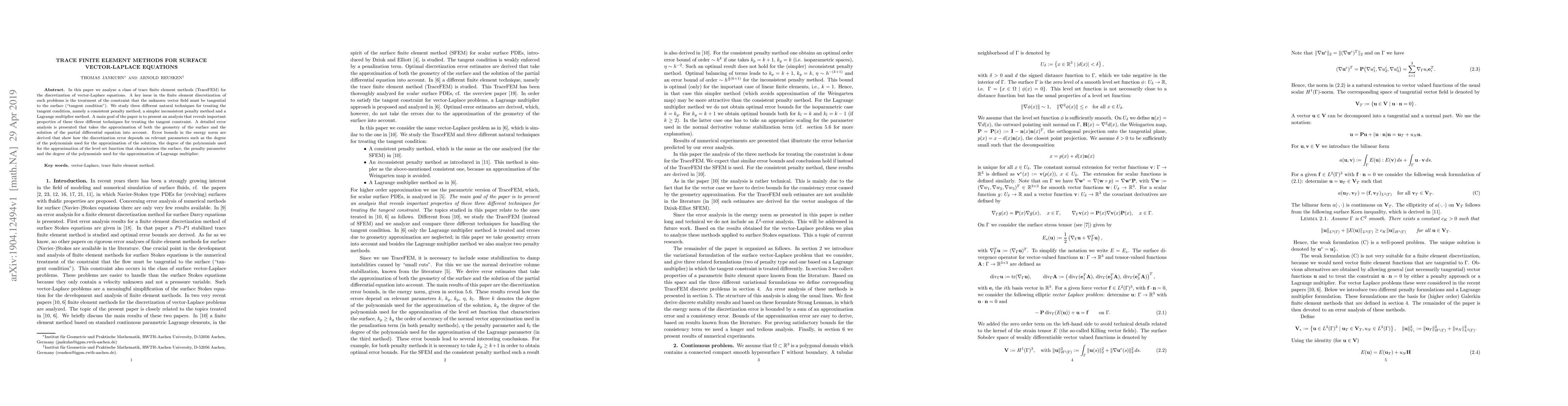 This paper analyzes three techniques for treating a constraint in vector-Laplace equations using trace finite element methods, deriving error bounds that show how discretization errors depend on parameters such as polynomial degree and penalty parameter.