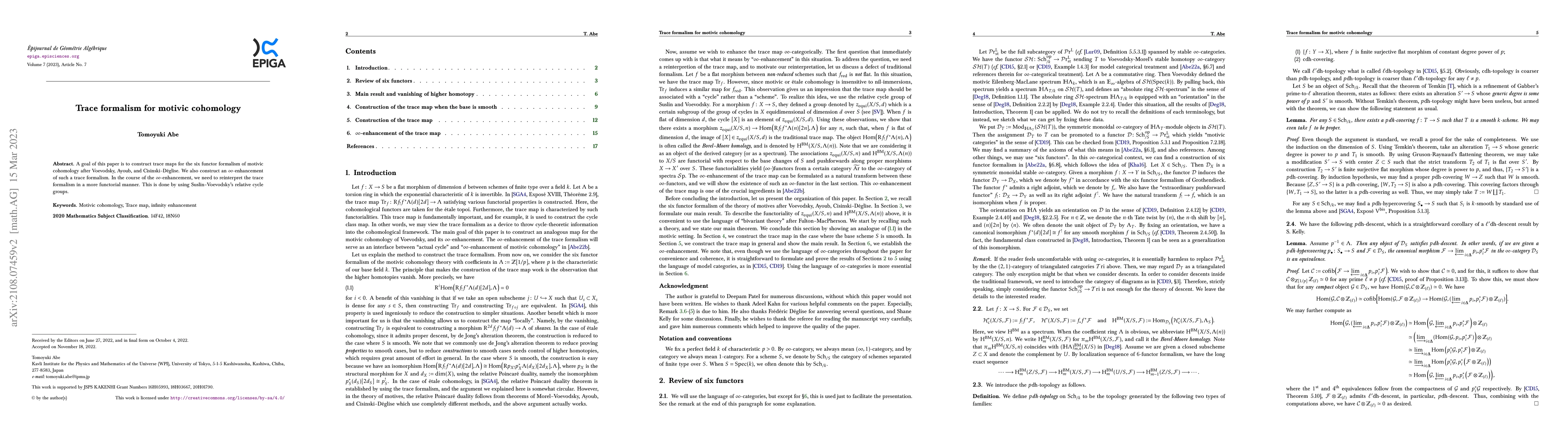 The goal of this paper is to construct trace maps for the six functor formalism of motivic cohomology after Voevodsky, Ayoub, and Cisinski-D\'{e}glise. We also construct an $\infty$-enhancement of such a trace formalism. In the course of the $\infty$-enhancement, we need to reinterpret the trace formalism in a more functorial manner. This is done by using Suslin-Voevodsky's relative cycle groups.