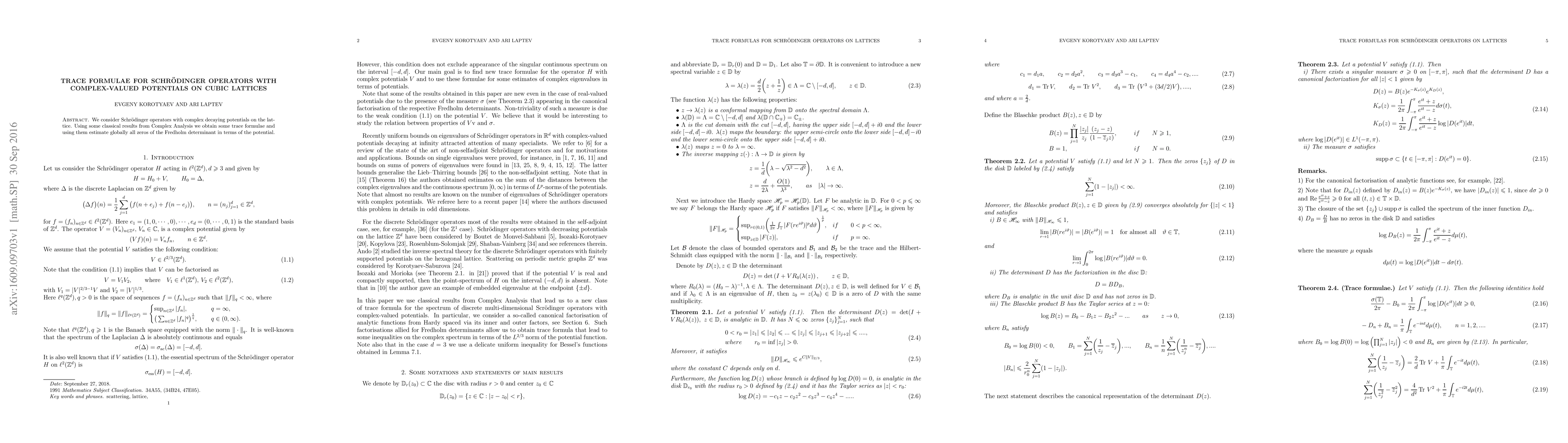 Summary: This paper derives trace formulae for Schrödinger operators with complex-valued potentials on cubic lattices, employing classical results from Complex Analysis to globally estimate all zeros of the Fredholm determinant associated with the potential.