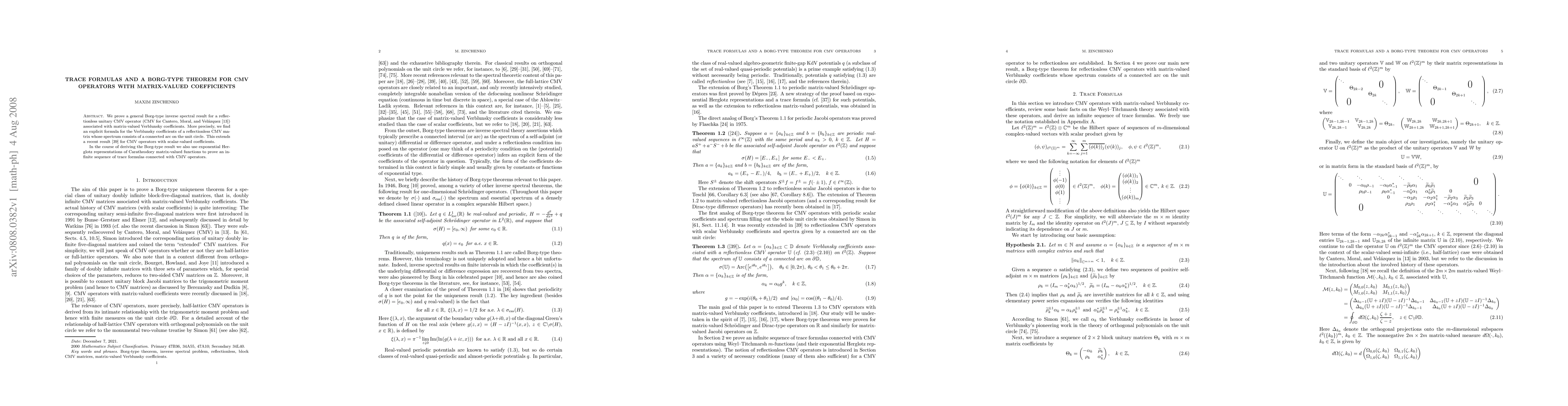 The paper establishes a Borg-type inverse spectral theorem for reflectionless unitary CMV operators with matrix-valued coefficients, providing an explicit formula for their Verblunsky coefficients. Additionally, it employs exponential Herglotz representations to derive an infinite sequence of trace formulas related to these operators.