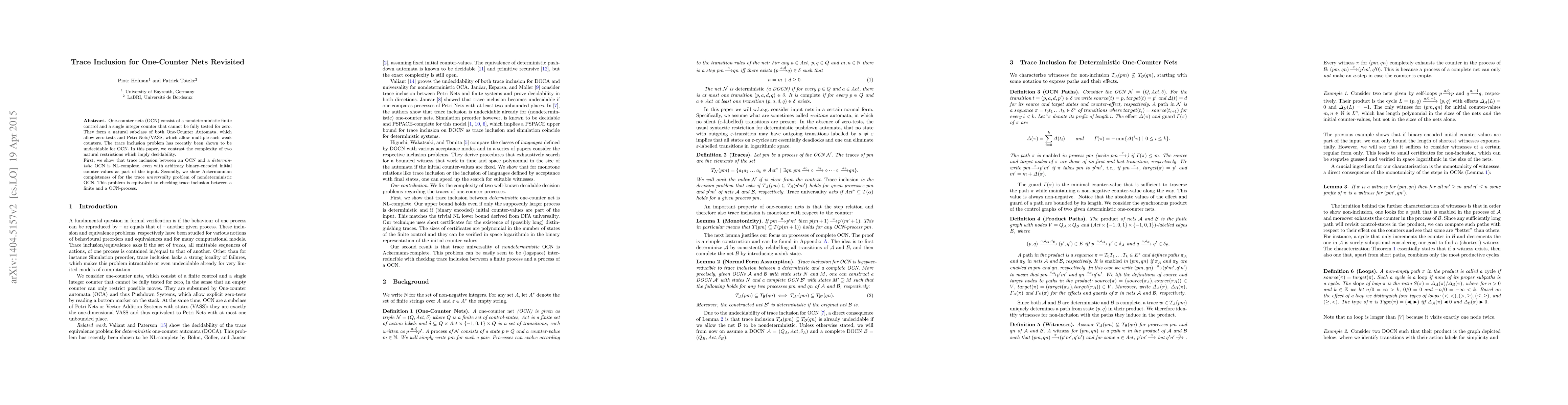 This work contributes to understanding the computational complexity of trace inclusion problems in One-Counter Nets, which are fundamental models in theoretical computer science with applications in areas like process verification and concurrency.