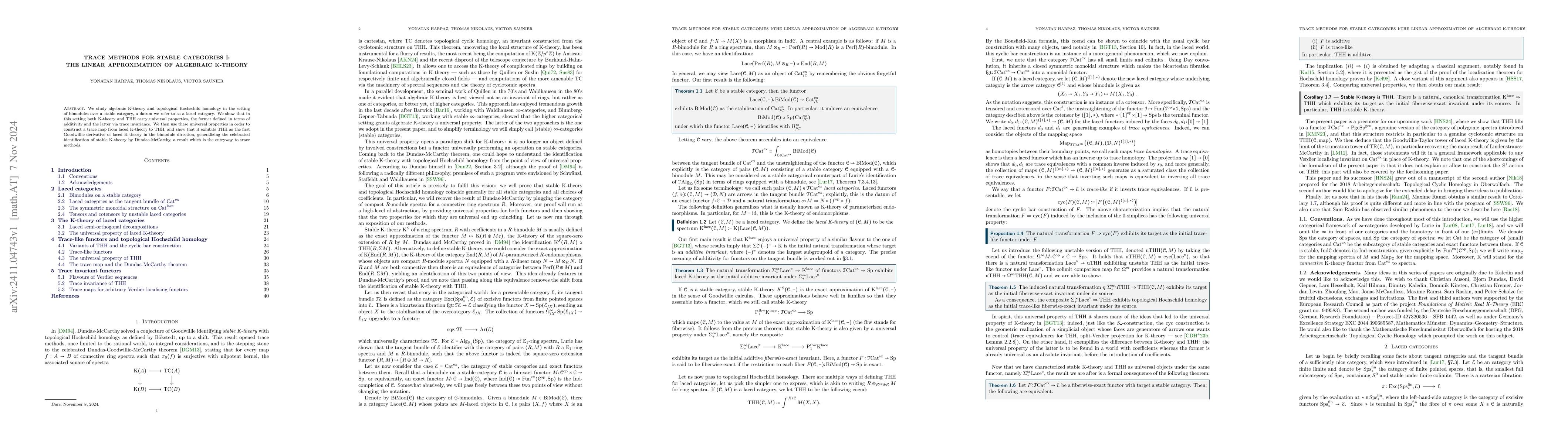 We study algebraic K-theory and topological Hochschild homology in the setting of bimodules over a stable category, a datum we refer to as a laced category. We show that in this setting both K-theory and THH carry universal properties, the former defined in terms of additivity and the latter via trace invariance. We then use these universal properties in order to construct a trace map from laced K-theory to THH, and show that it exhibits THH as the first Goodwillie derivative of laced K-theory in the bimodule direction, generalizing the celebrated identification of stable K-theory by Dundas-McCarthy, a result which is the entryway to trace methods.