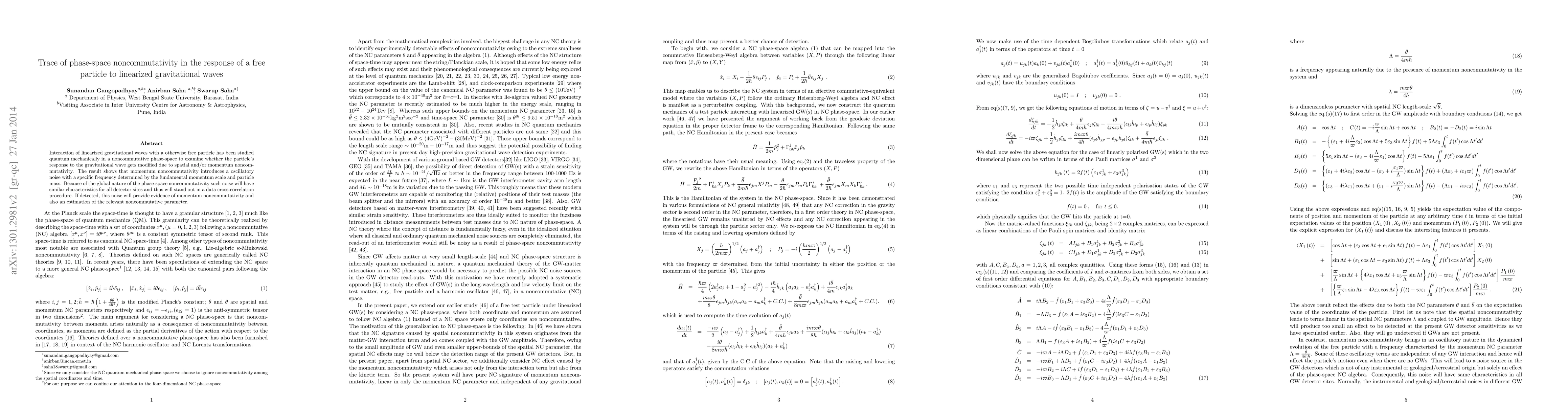 This study investigates how linearized gravitational waves affect a free particle in a quantum mechanical framework with noncommutative phase-space, revealing that momentum noncommutativity induces an oscillatory noise tied to a fundamental momentum scale and particle mass. This noise, uniform across detector sites, could provide evidence of momentum noncommutativity and estimate its parameters if detected.