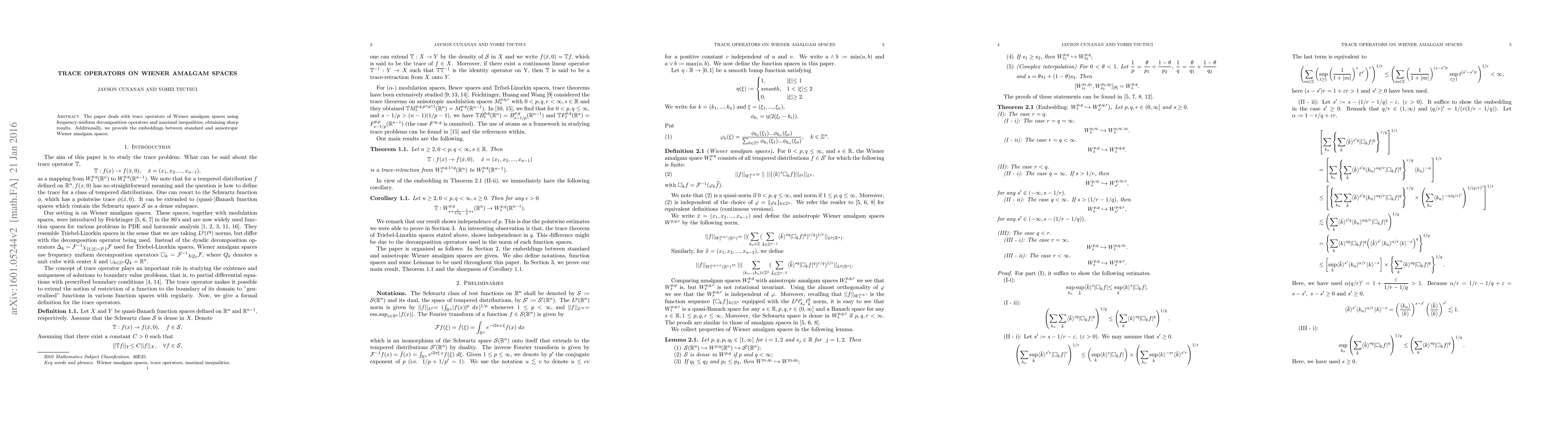The paper presents sharp embeddings and trace operator results for Wiener amalgam spaces, utilizing frequency-uniform decomposition operators and maximal inequalities.