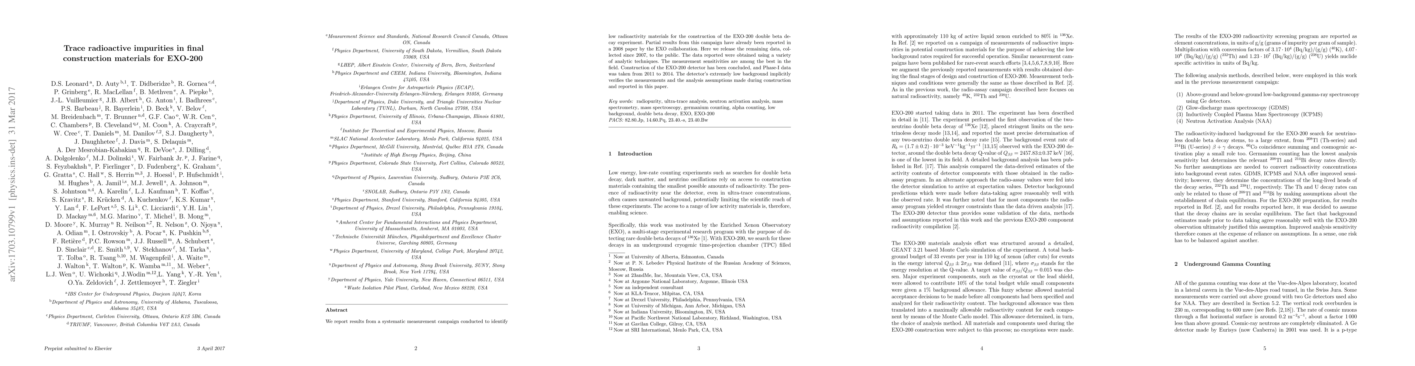 This paper details a comprehensive measurement campaign to identify low radioactivity materials for the EXO-200 double beta decay experiment, with the data collected since 2007 released to the public. The detector's low background confirms the effectiveness of the construction methods used.