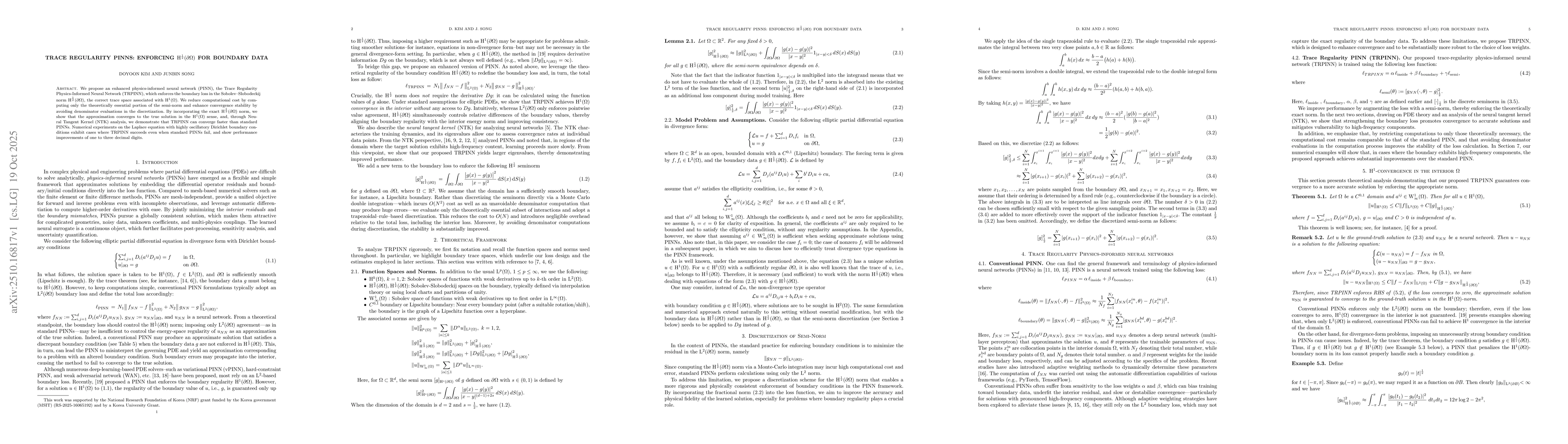 The study introduces TRPINN, a physics-informed neural network framework that enforces H12(∂Ω) regularity at the boundary by modifying the boundary loss function. This approach integrates theoretical insights from PDEs with neural network training through a discretized version of the H12 norm.