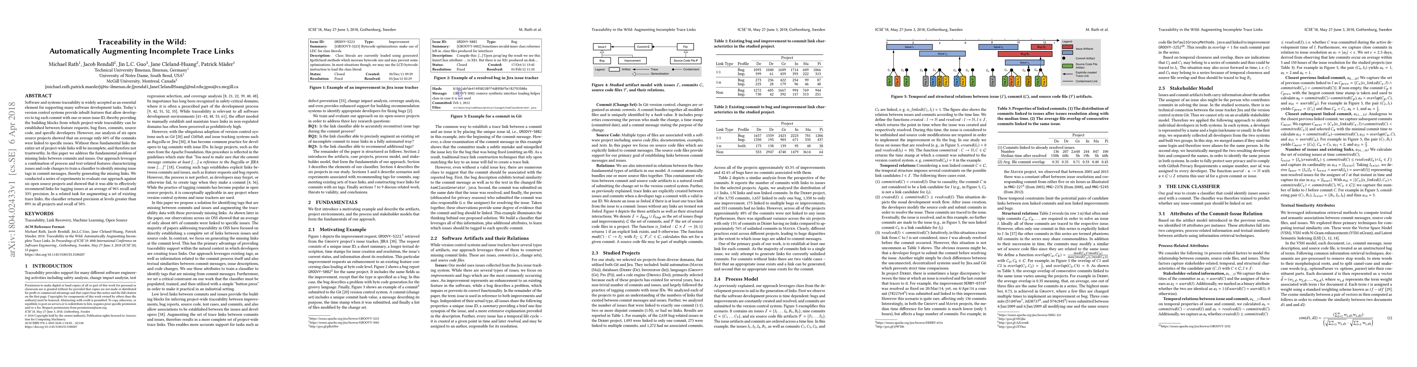 This paper proposes an automated method to identify and augment missing traceability links between commits and issues in version control systems. The approach uses a classifier trained on process and text-related features to recommend missing issue tags, achieving high recall and precision in experiments across six open source projects.