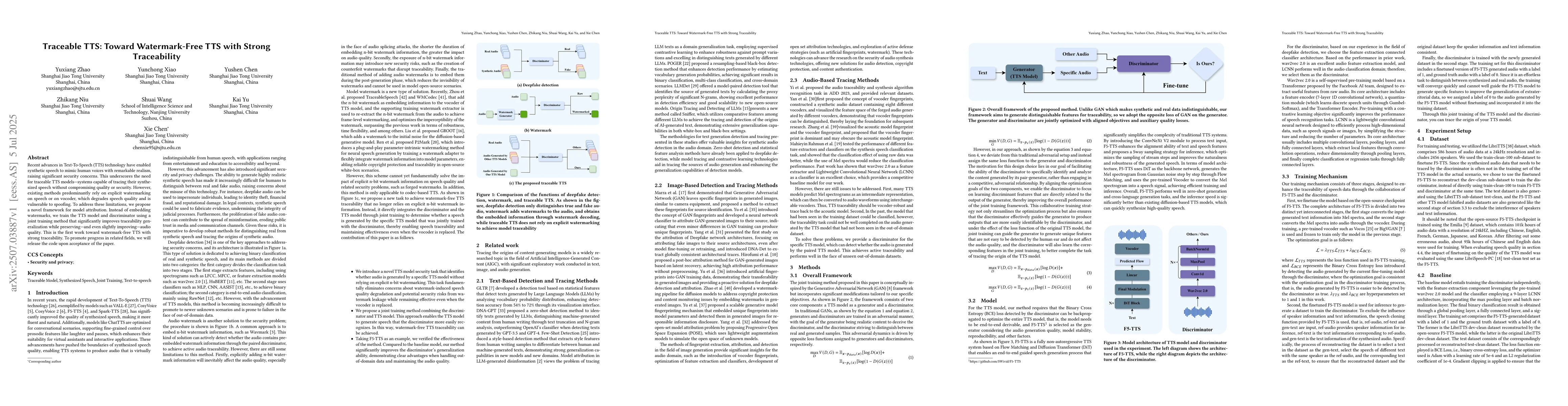 Recent advances in Text-To-Speech (TTS) technology have enabled synthetic speech to mimic human voices with remarkable realism, raising significant security concerns. This underscores the need for traceable TTS models-systems capable of tracing their synthesized speech without compromising quality or security. However, existing methods predominantly rely on explicit watermarking on speech or on vocoder, which degrades speech quality and is vulnerable to spoofing. To address these limitations, we propose a novel framework for model attribution. Instead of embedding watermarks, we train the TTS model and discriminator using a joint training method that significantly improves traceability generalization while preserving-and even slightly improving-audio quality. This is the first work toward watermark-free TTS with strong traceability. To promote progress in related fields, we will release the code upon acceptance of the paper.