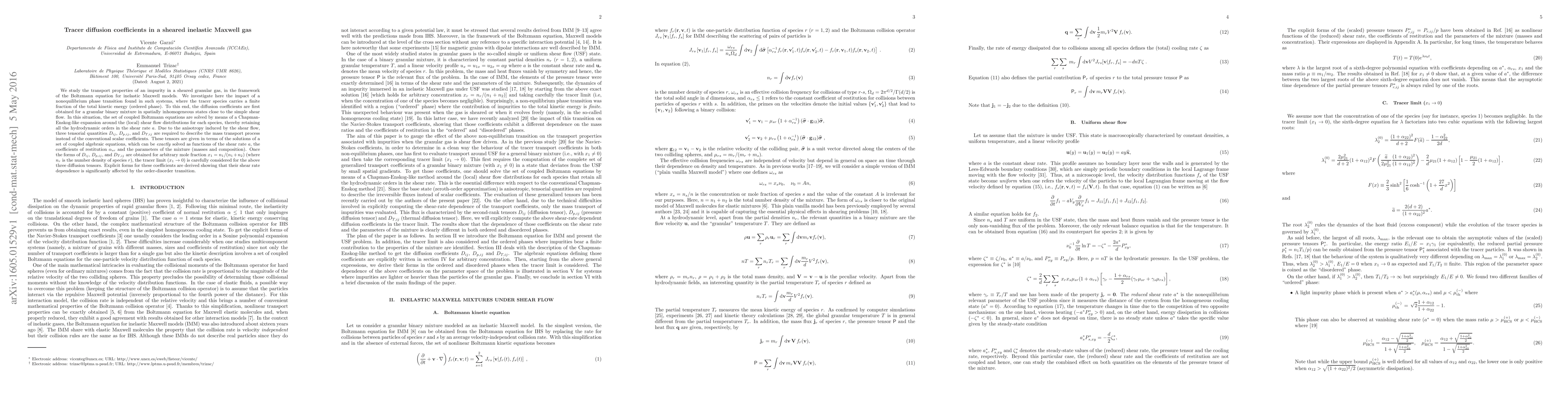 The research employs the Boltzmann equation for inelastic Maxwell models to study tracer diffusion in a sheared granular gas, solving a set of coupled Boltzmann equations using a Chapman-Enskog-like expansion around local shear flow distributions for each species, retaining all hydrodynamic orders in the shear rate.