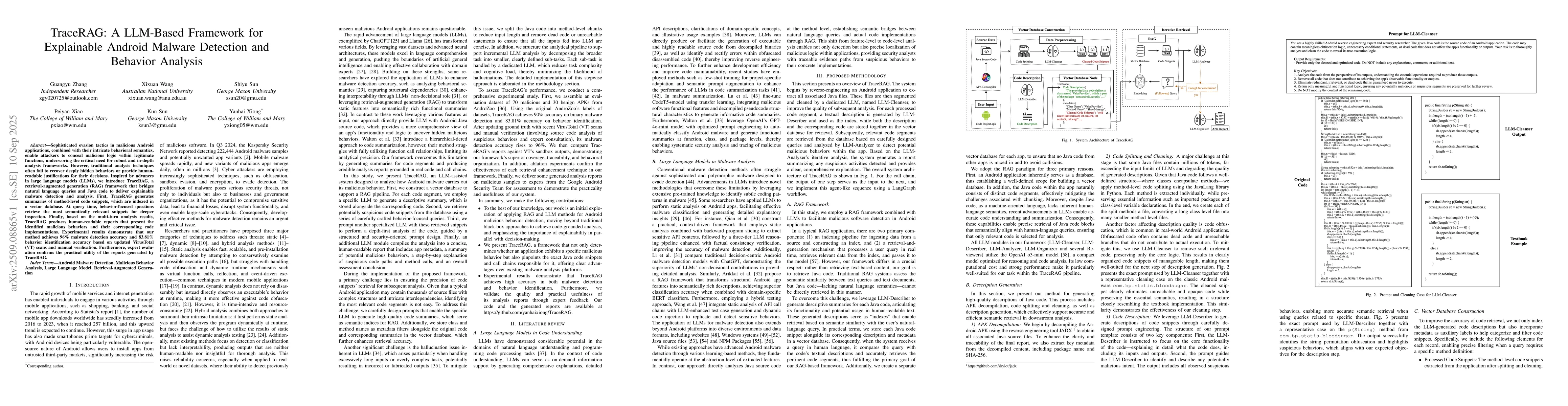 Sophisticated evasion tactics in malicious Android applications, combined with their intricate behavioral semantics, enable attackers to conceal malicious logic within legitimate functions, underscoring the critical need for robust and in-depth analysis frameworks. However, traditional analysis techniques often fail to recover deeply hidden behaviors or provide human-readable justifications for their decisions. Inspired by advances in large language models (LLMs), we introduce TraceRAG, a retrieval-augmented generation (RAG) framework that bridges natural language queries and Java code to deliver explainable malware detection and analysis. First, TraceRAG generates summaries of method-level code snippets, which are indexed in a vector database. At query time, behavior-focused questions retrieve the most semantically relevant snippets for deeper inspection. Finally, based on the multi-turn analysis results, TraceRAG produces human-readable reports that present the identified malicious behaviors and their corresponding code implementations. Experimental results demonstrate that our method achieves 96\% malware detection accuracy and 83.81\% behavior identification accuracy based on updated VirusTotal (VT) scans and manual verification. Furthermore, expert evaluation confirms the practical utility of the reports generated by TraceRAG.