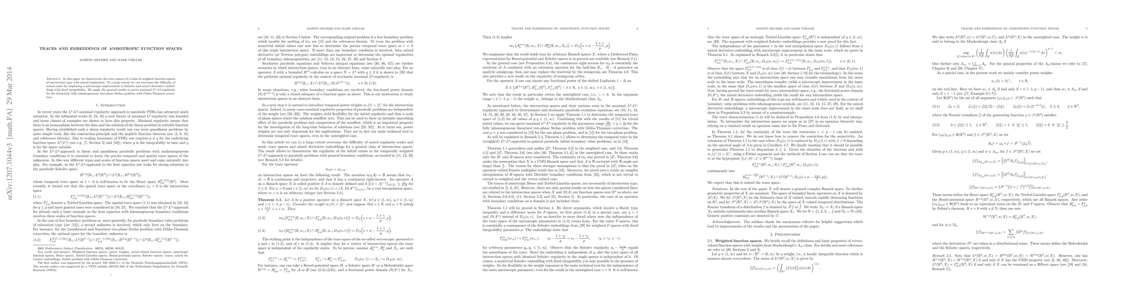 In this paper we characterize the trace spaces of a class of weighted function spaces of intersection type with mixed regularities. To a large extent we can overcome the difficulty of mixed scales by employing a microscopic improvement in Sobolev and mixed derivative embeddings with fixed integrability. We apply the general results to prove maximal $L^p$-$L^q$-regularity for the linearized, fully inhomogeneous two-phase Stefan problem with Gibbs-Thomson correction.