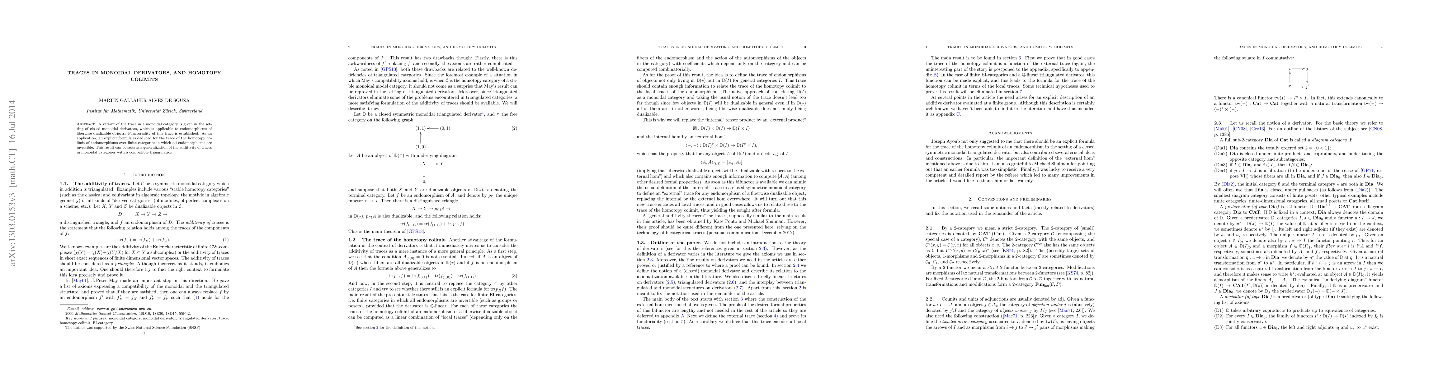 This paper introduces a trace variant in closed monoidal derivators for endomorphisms of fiberwise dualizable objects, proving its functoriality. It derives an explicit formula for the trace of homotopy colimits over finite EI-categories, generalizing the additivity of traces in monoidal categories with compatible triangulations.