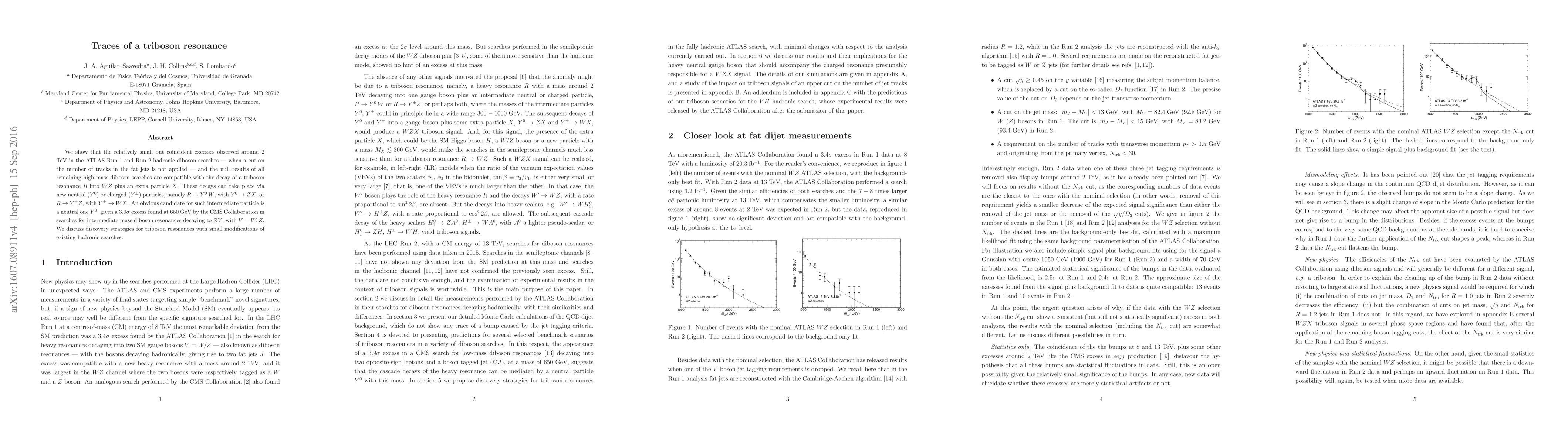 We show that the relatively small but coincident excesses observed around 2 TeV in the ATLAS Run 1 and Run 2 hadronic diboson searches --- when a cut on the number of tracks in the fat jets is not applied --- and the null results of all remaining high-mass diboson searches are compatible with the decay of a triboson resonance $R$ into $WZ$ plus an extra particle $X$. These decays can take place via new neutral ($Y^0$) or charged ($Y^\pm$) particles, namely $R \to Y^0 \, W$, with $Y^0 \to Z X$, or $R \to Y^\pm Z$, with $Y^\pm \to W X$. An obvious candidate for such intermediate particle is a neutral one $Y^0$, given a $3.9\sigma$ excess found at 650 GeV by the CMS Collaboration in searches for intermediate mass diboson resonances decaying to $ZV$, with $V=W,Z$. We discuss discovery strategies for triboson resonances with small modifications of existing hadronic searches.