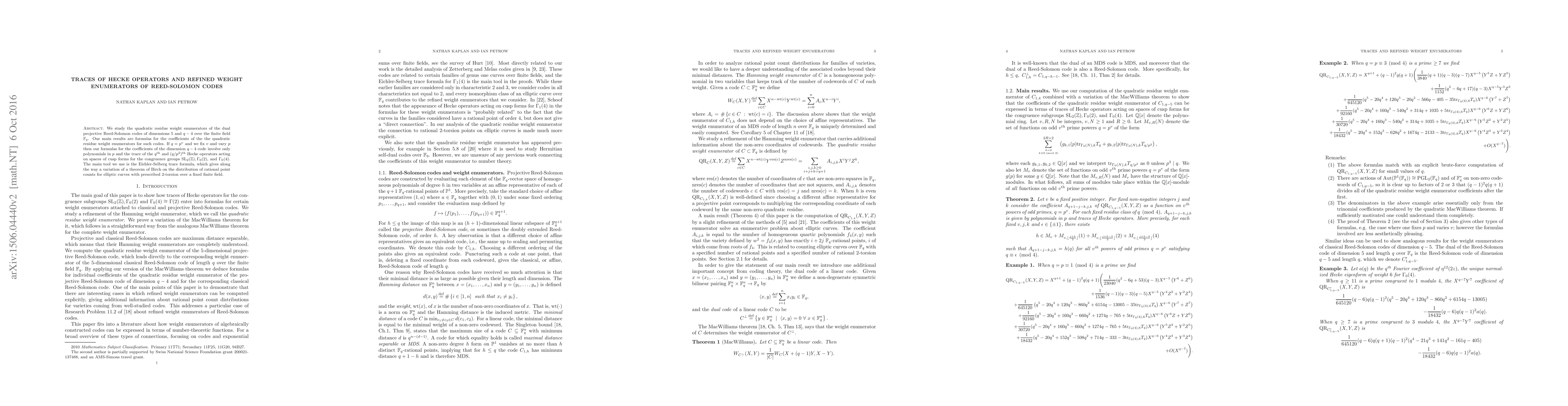 We study the quadratic residue weight enumerators of the dual projective Reed-Solomon codes of dimensions $5$ and $q-4$ over the finite field $\mathbb{F}_q$. Our main results are formulas for the coefficients of the the quadratic residue weight enumerators for such codes. If $q=p^v$ and we fix $v$ and vary $p$ then our formulas for the coefficients of the dimension $q-4$ code involve only polynomials in $p$ and the trace of the $q$th and $(q/p^2)$th Hecke operators acting on spaces of cusp forms for the congruence groups $\operatorname{SL}_2 (\mathbb{Z}), \Gamma_0(2)$, and $\Gamma_0(4)$. The main tool we use is the Eichler-Selberg trace formula, which gives along the way a variation of a theorem of Birch on the distribution of rational point counts for elliptic curves with prescribed $2$-torsion over a fixed finite field.