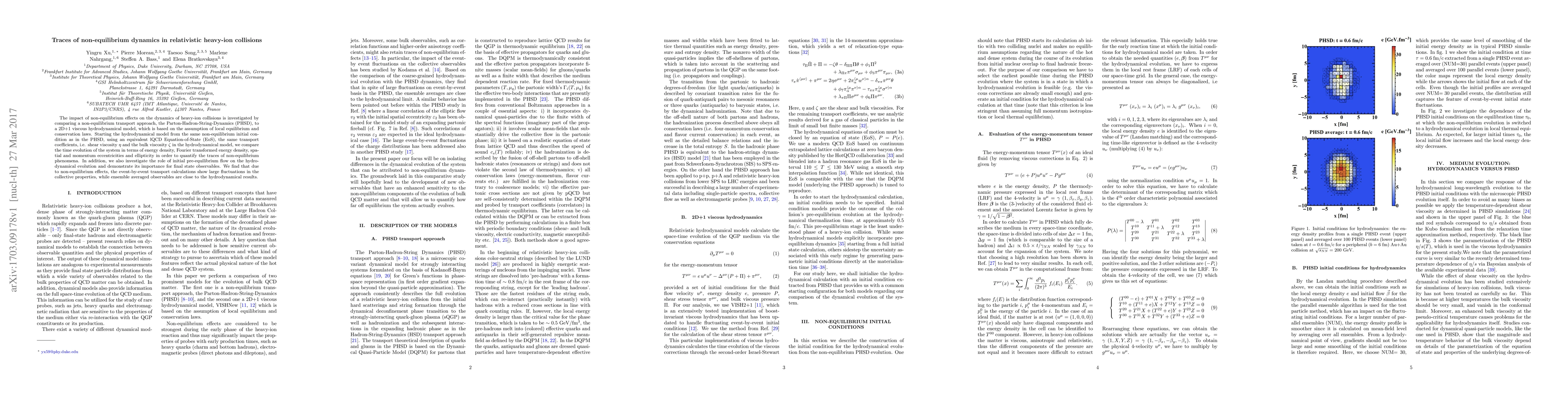 The paper presents a detailed comparison of non-equilibrium dynamics and local equilibrium hydrodynamics, providing insights into the role of initial pre-equilibrium flow and non-equilibrium effects in heavy-ion collisions.