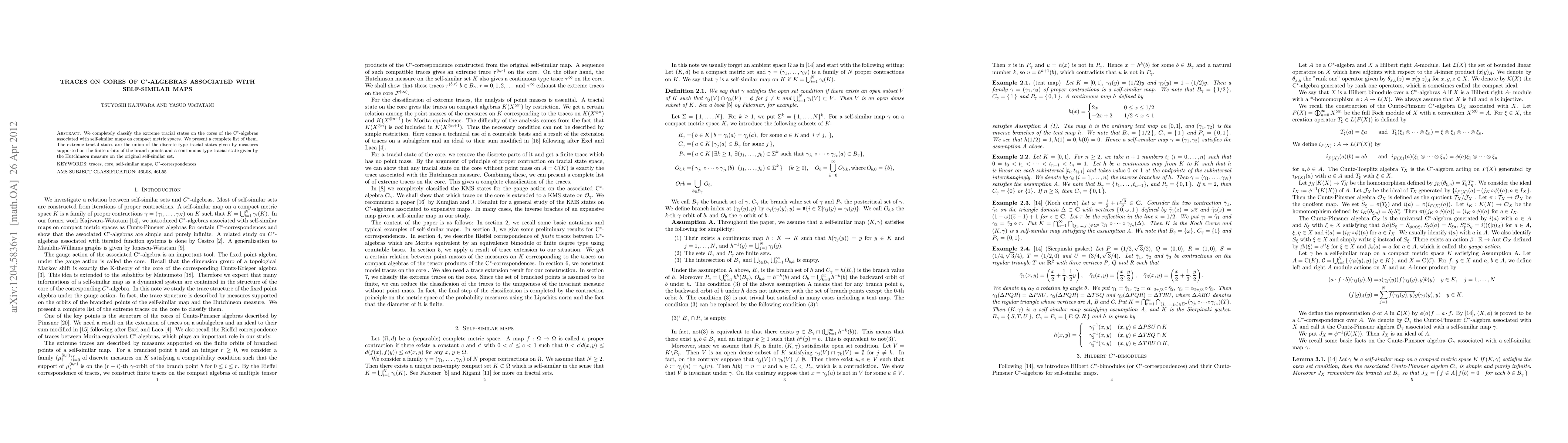 This paper classifies the extreme tracial states on the cores of C*-algebras linked to self-similar maps on compact metric spaces, identifying them as a combination of discrete and continuous types, with the latter represented by the Hutchinson measure.