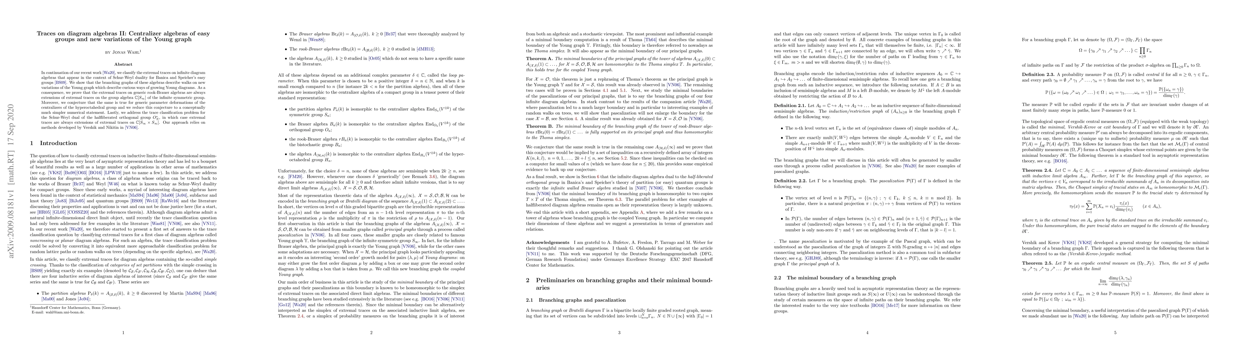 In continuation of our recent work arXiv:2006.07312, we classify the extremal traces on infinite diagram algebras that appear in the context of Schur-Weyl duality for Banica and Speicher's easy groups. We show that the branching graphs of these algebras describe walks on new variations of the Young graph which describe curious ways of growing Young diagrams. As a consequence, we prove that the extremal traces on generic rook-Brauer algebras are always extensions of extremal traces on the group algebra $\mathbb{C}[S_{\infty}]$ of the infinite symmetric group. Moreover, we conjecture that the same is true for generic parameter deformations of the centralizers of the hyperoctahedral group and we reduce this conjecture to a conceptually much simpler numerical statement. Lastly, we address the trace classification problem for the Schur-Weyl dual of the halfliberated orthogonal group $O_N^*$, in which case extremal traces are always extensions of extremal traces on $\mathbb{C}[S_{\infty} \times S_{\infty}]$. Our approach relies on methods developed by Vershik and Nikitin.