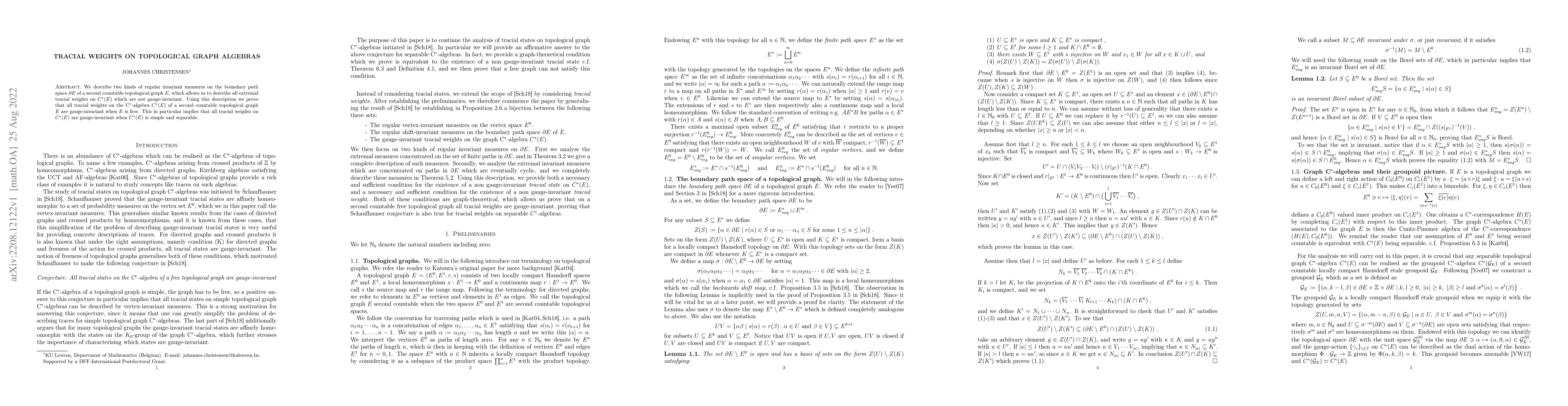 This paper identifies two types of regular invariant measures on the boundary path space of a second countable topological graph, leading to a description of all extremal tracial weights on the graph C$^*$-algebra that are not gauge-invariant. It concludes that all tracial weights on the graph C$^*$-algebra are gauge-invariant when the graph is free, implying the same for simple and separable graph C$^*$-algebras.