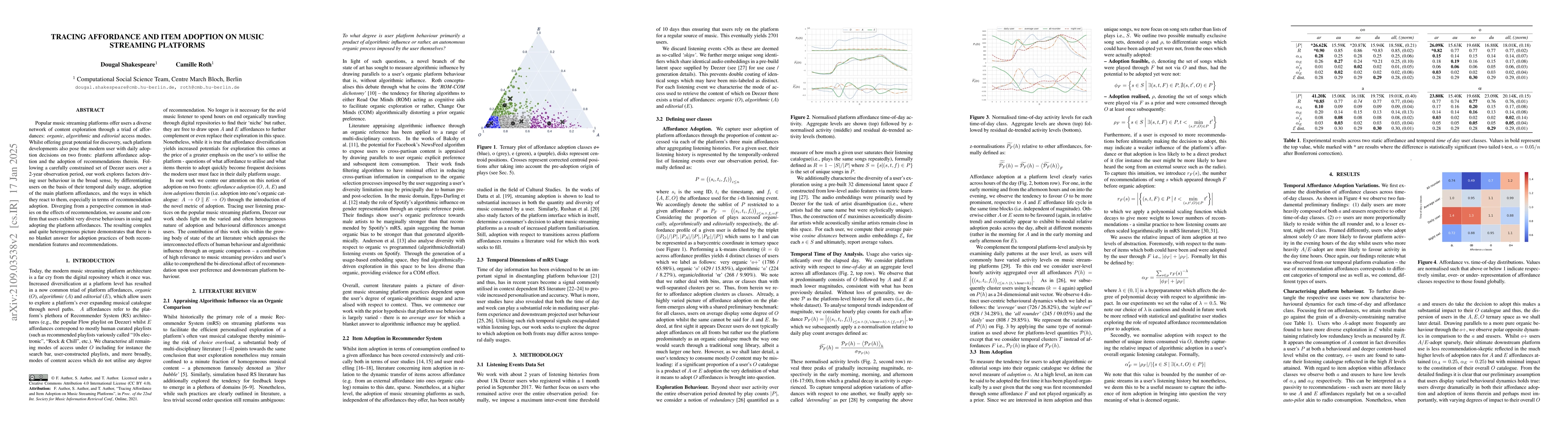 This study investigates user behaviour on music streaming platforms, focusing on the adoption of platform affordances and recommendations over a 2-year period with Deezer users. It reveals significant diversity in how users adopt different access modes and recommendations, showing that there is no singular adoption pattern.