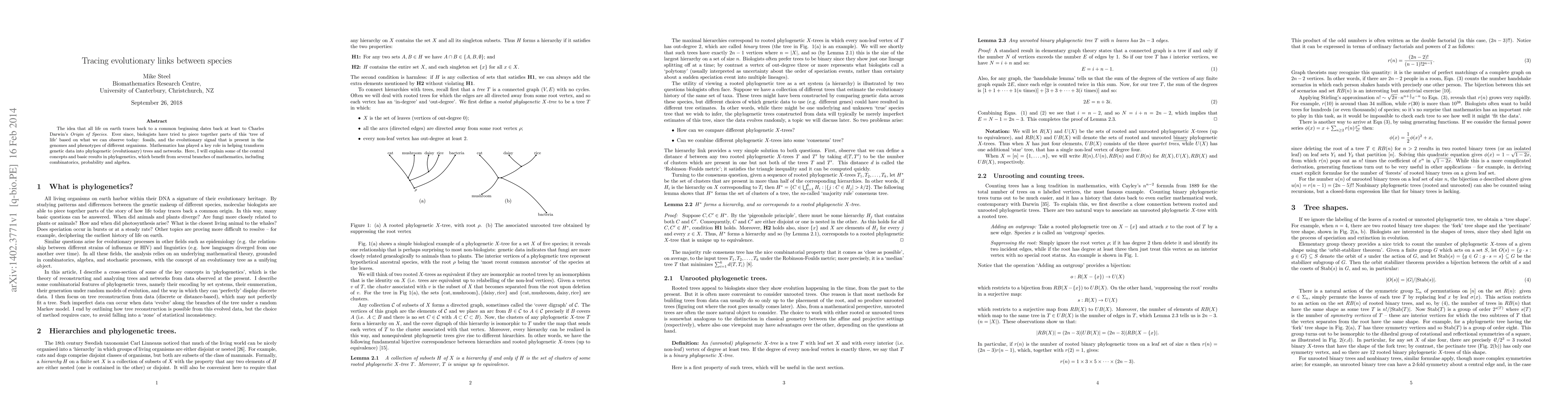 The idea that all life on earth traces back to a common beginning dates back at least to Charles Darwin's {\em Origin of Species}. Ever since, biologists have tried to piece together parts of this `tree of life' based on what we can observe today: fossils, and the evolutionary signal that is present in the genomes and phenotypes of different organisms. Mathematics has played a key role in helping transform genetic data into phylogenetic (evolutionary) trees and networks. Here, I will explain some of the central concepts and basic results in phylogenetics, which benefit from several branches of mathematics, including combinatorics, probability and algebra.