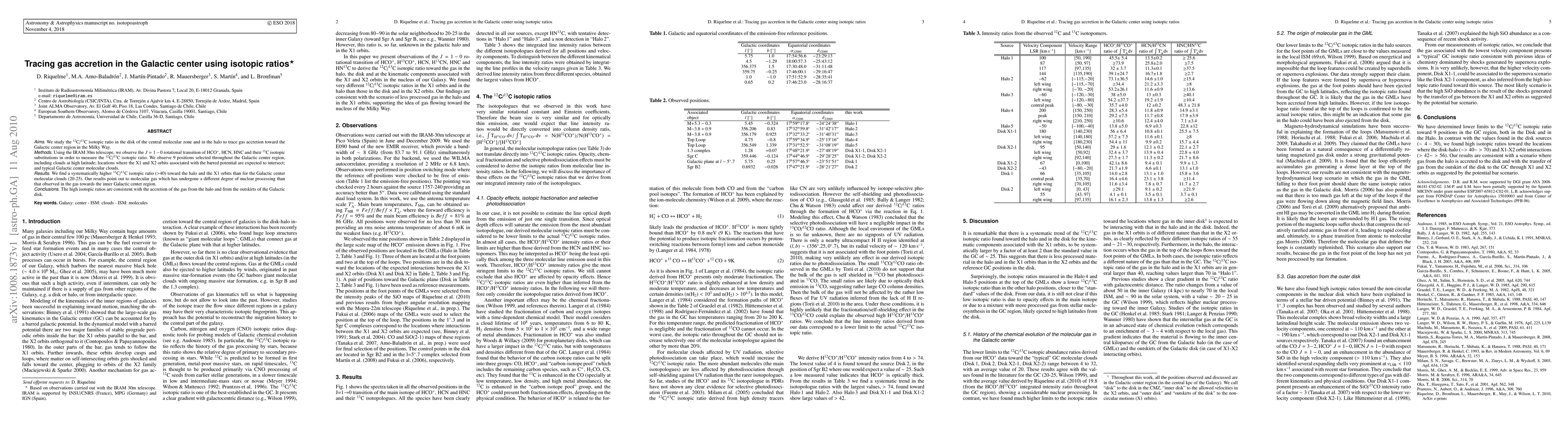 Researchers used isotopic ratios to track gas accretion toward the Milky Way's Galactic center, finding higher 12C/13C ratios in halo gas and near X1 orbits, indicating gas from the halo and disk outskirts has been added.