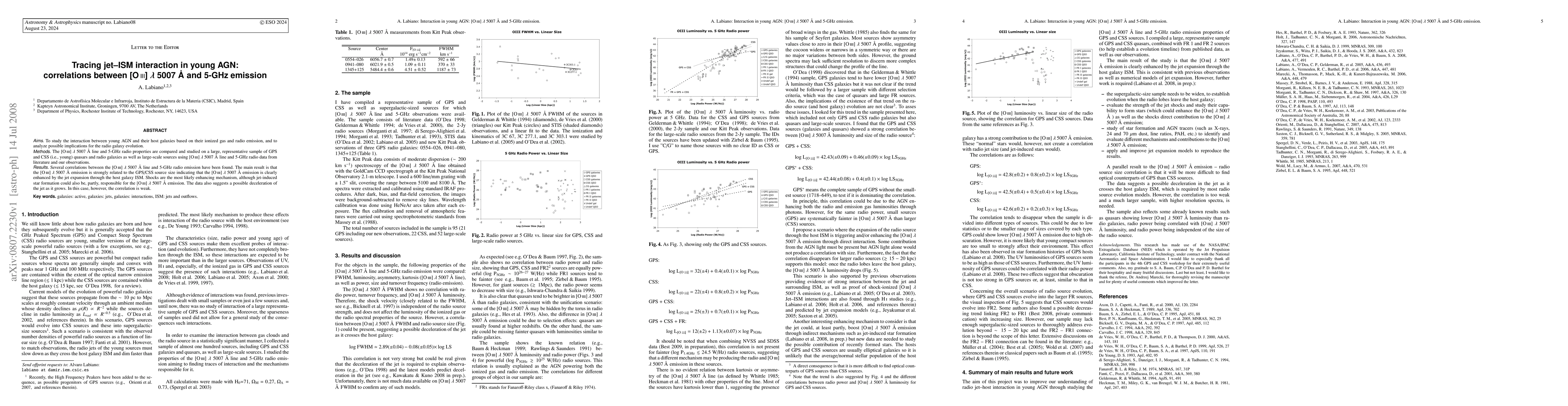 This study examines the interaction between young active galactic nuclei (AGN) and their host galaxies by analyzing ionized gas ([OIII] 5007) and radio (5-GHz) emission. Key findings reveal correlations indicating that jet expansion significantly enhances [OIII] 5007 emission, likely through shocks, and possibly through jet-induced star formation. The research also hints at potential jet deceleration as it grows within the ISM.
